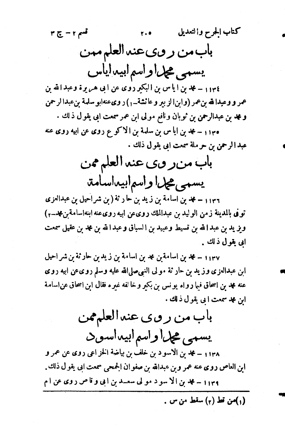 - باب من رُوي عنه العلم، مِمَّن يُسَمَّى مُحَمدًا، واسم أَبيه أُسامة.