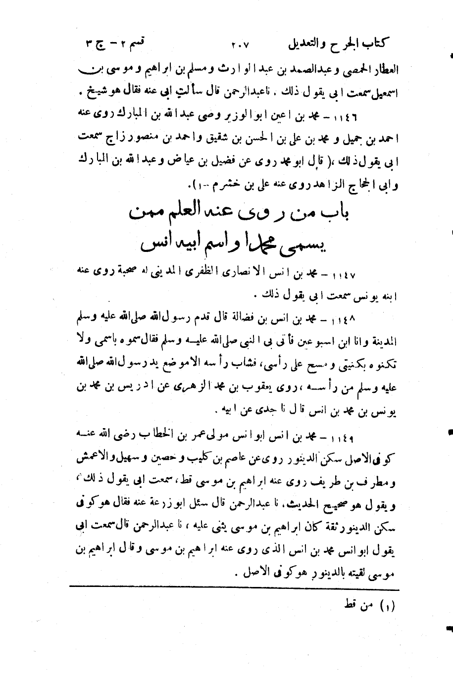 - باب من رُوي عنه العلم، مِمَّن يُسَمَّى مُحَمدًا، واسم أَبيه أنس.