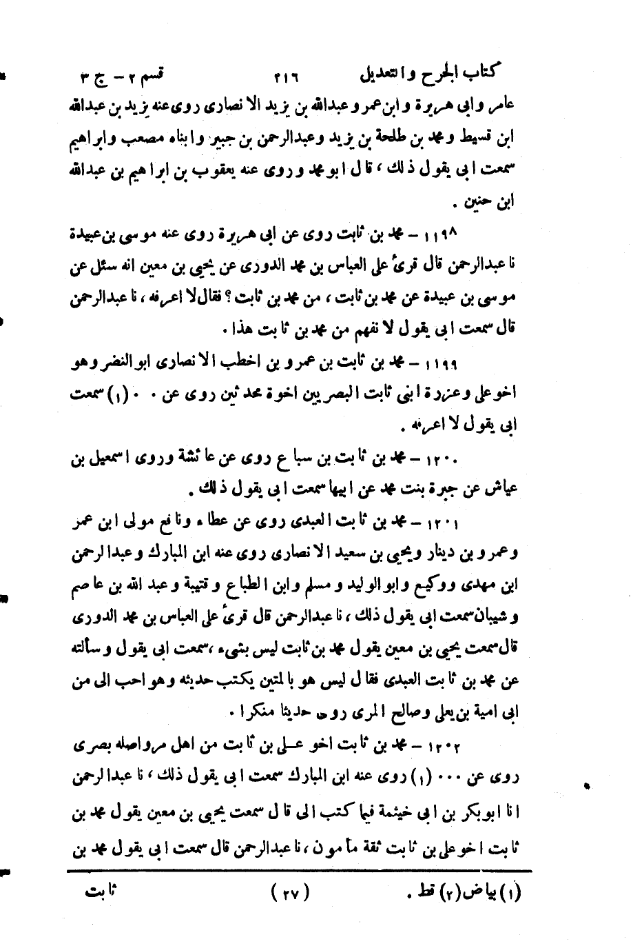 1199- محمد بن ثابت بن عَمرو بن أخطب الأَنصاري أَبو النضر، وهو أَخو علي، وعزرة ابني ثابت البَصريين، إخوة محدثين.
