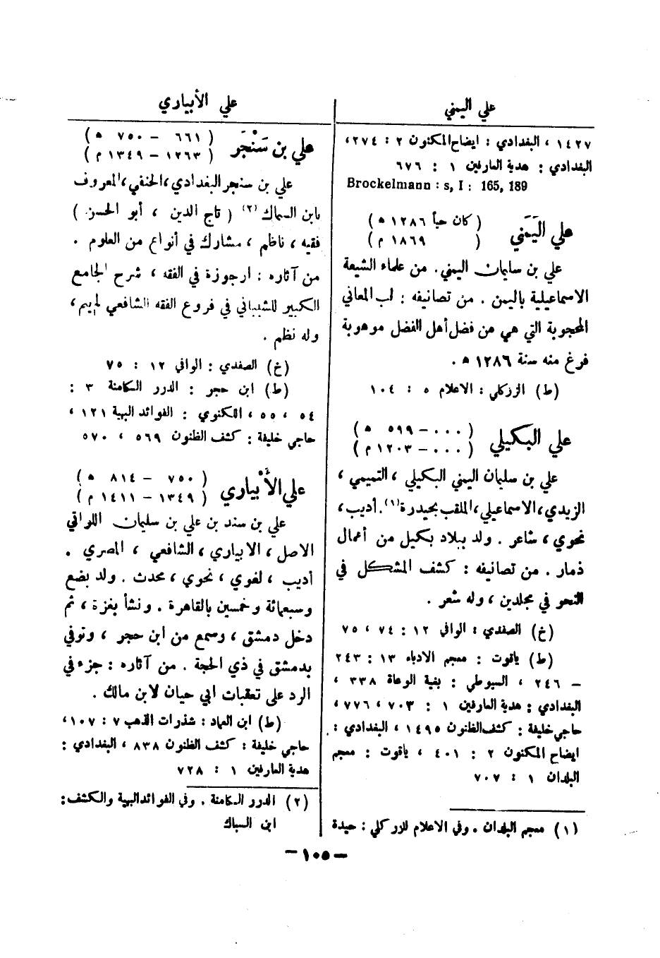 1427، البغدادي: ايضاح المكنون 2: 274، البغدادي: هدية العارفين 1: 676 189 , 165: Brockelmann: s , I علي اليمني (كان حيا 1286 هـ) (1869 م)