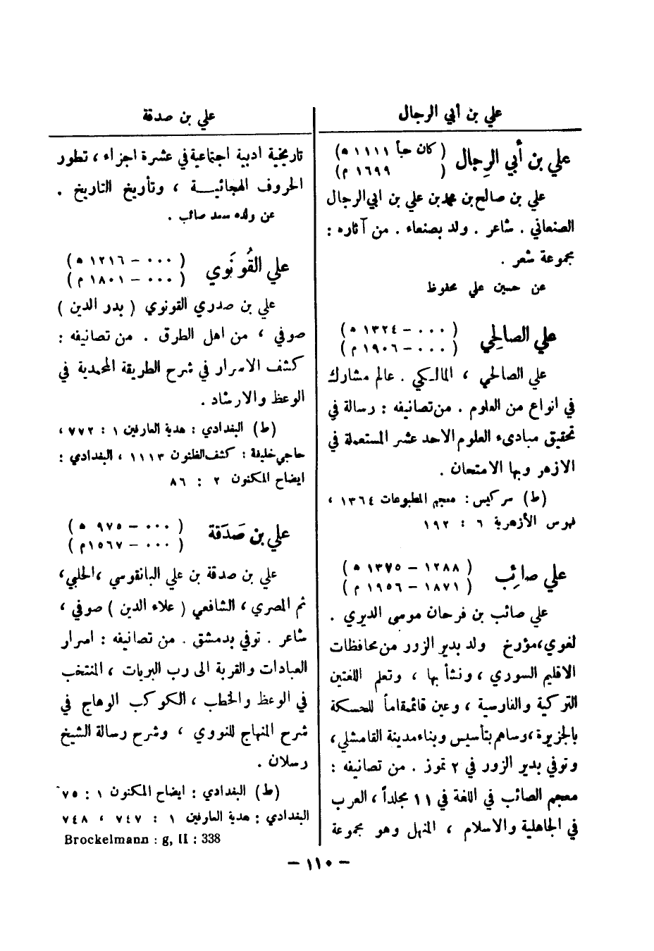 (ط) البغدادي: ايضاح المكنون 1: 75 البغدادي: هدية العارفين 1: 747، 748 338: Brockelmann: g , II