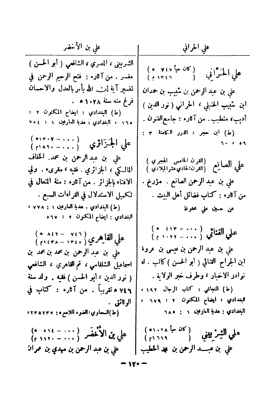 (ط) النجاشي: كتاب الرجال 192، البغدادي: ايضاح المكنون 2: 679، البغدادي: هدية العارفين 1: 685 علي الشربيني (كان حيا 1028 هـ) (1619 م) علي بن عبد الرحمن بن محمد الخطيب الشربيني، المصري، الشافعي (أبو الحسن) مفسر.