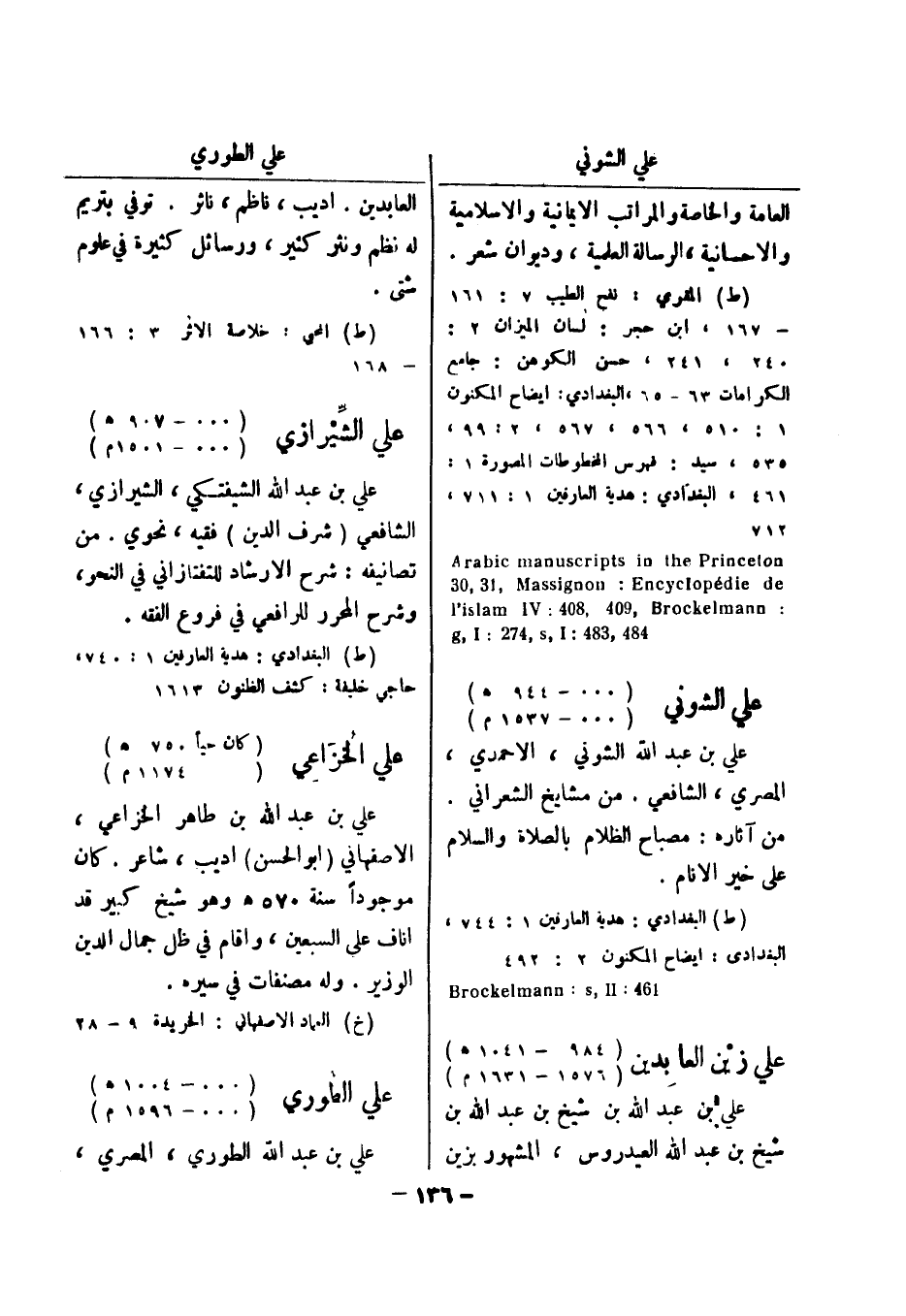 (ط) البغدادي: هدية العارفين 1: 744، البغدادي: ايضاح المكنون 2: 492 461: Brockelmann: s , II علي زين العابدين (984 - 1041 هـ) (1576 - 1631 م) علي بن عبد الله بن شيخ بن عبد الله بن شيخ بن عبد الله العيدروس، المشهور بزين العابدين.