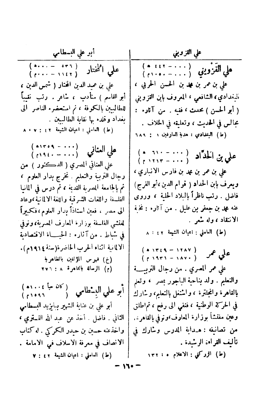 (ط) العاملي: اعيان الشيعة 42: 8 علي عمر (1287 - 1349 هـ) (1870 - 1931 م) علي عمر المصري.