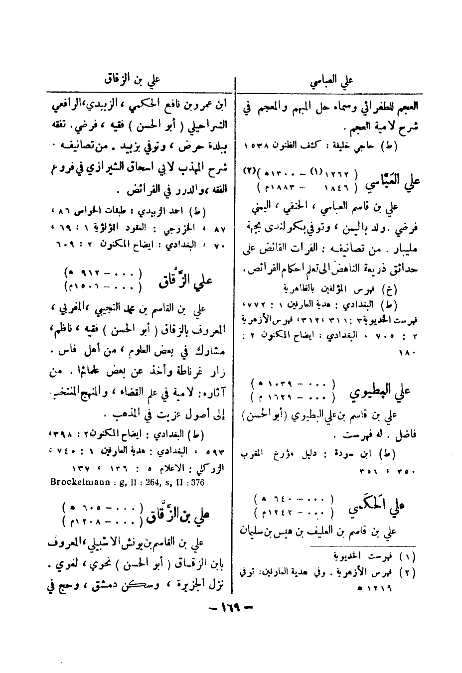 (ط) حاجي خليفة: كشف الظنون 1538 علي العباسي (1262 (1) - 1300 هـ) (2) (1846 - 1883 م) علي بن قاسم العباسي، الحنفي، اليمني فرضي.