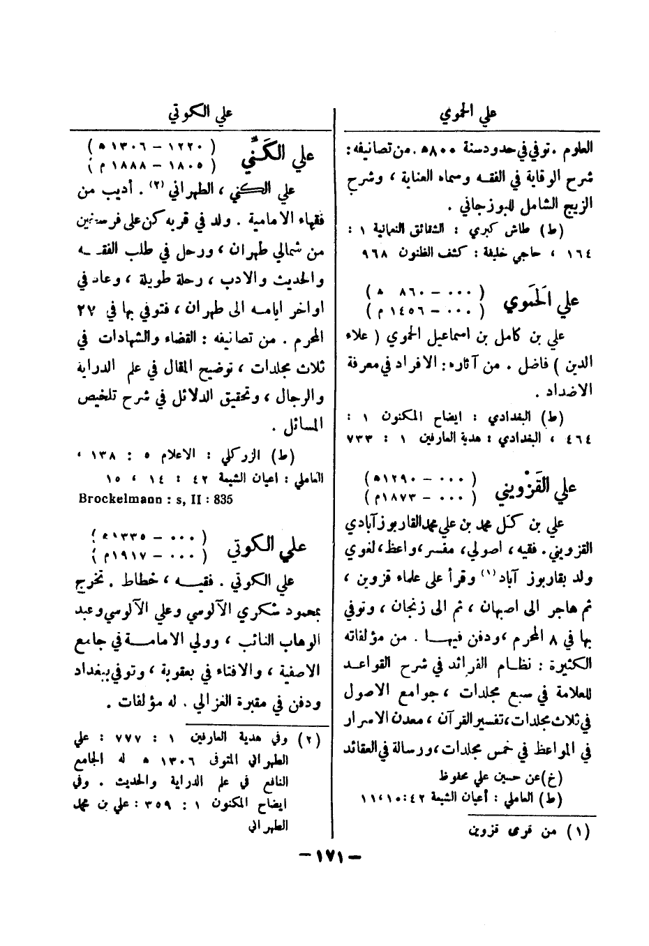(ط) الزر كلي: الاعلام 5: 138، العاملي: اعيان الشيعة 42: 14، 15 835: Brockelmann: s , II