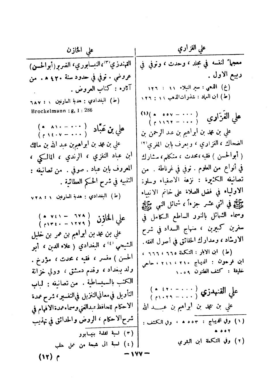 (ط) البغدادي: هدية العارفين 1: 728 علي الخازن (678 - 741 هـ) (1279 - 1340 م) علي بن محمد بن ابراهيم بن عمر بن خليل الشيخي (4) ، البغدادي (علاء الدين أبو الحسن) مفسر، فقيه، محدث، مؤرخ.