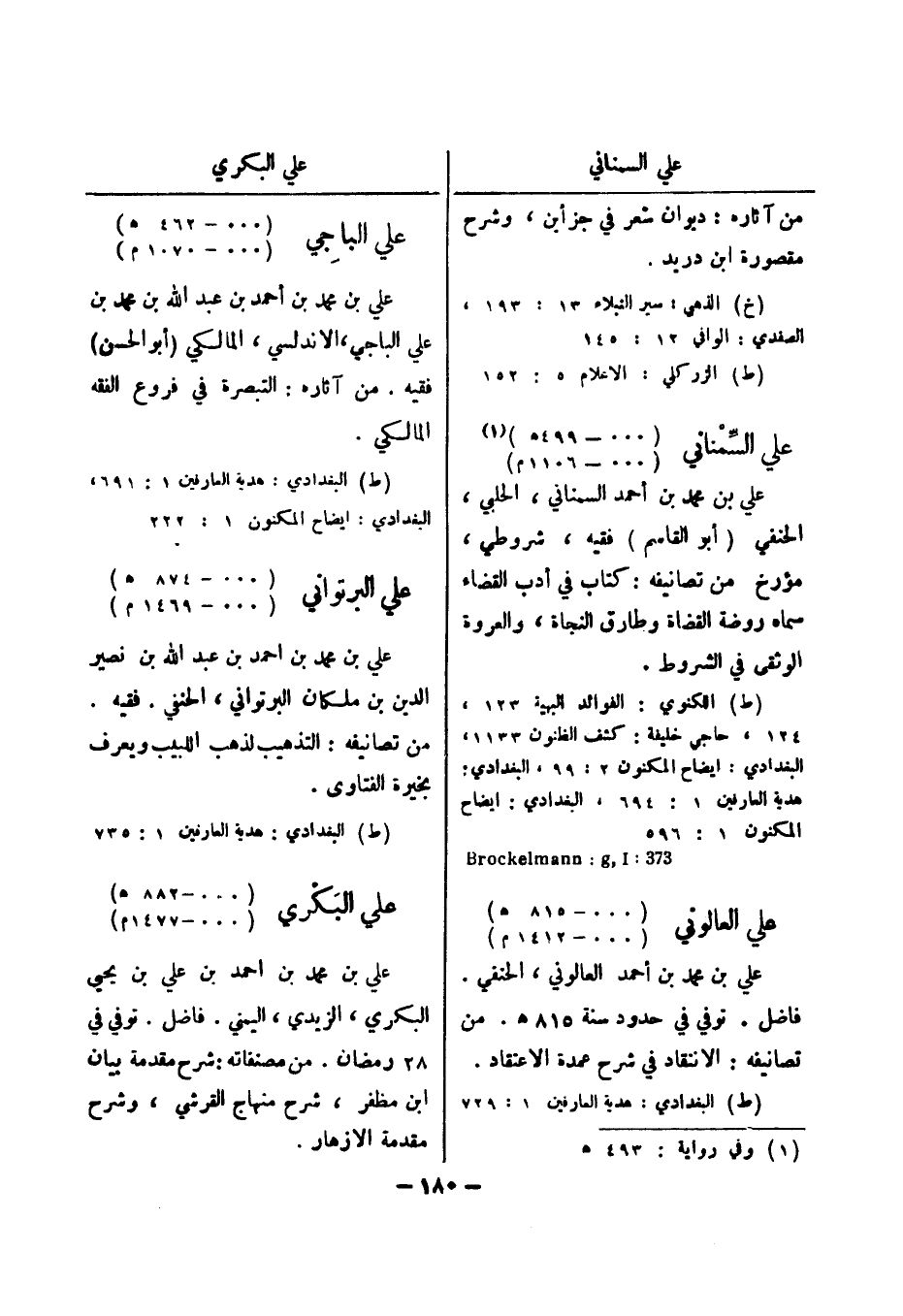 البغدادي: ايضاح المكنون 2: 99، البغدادي: هدية العارفين 1: 694، البغدادي: ايضاح المكنون 1: 596 373 ; Brockelmann: g , I علي العالوني (..- 815 هـ) (..- 1412 م) علي بن محمد بن أحمد العالوني، الحنفي.