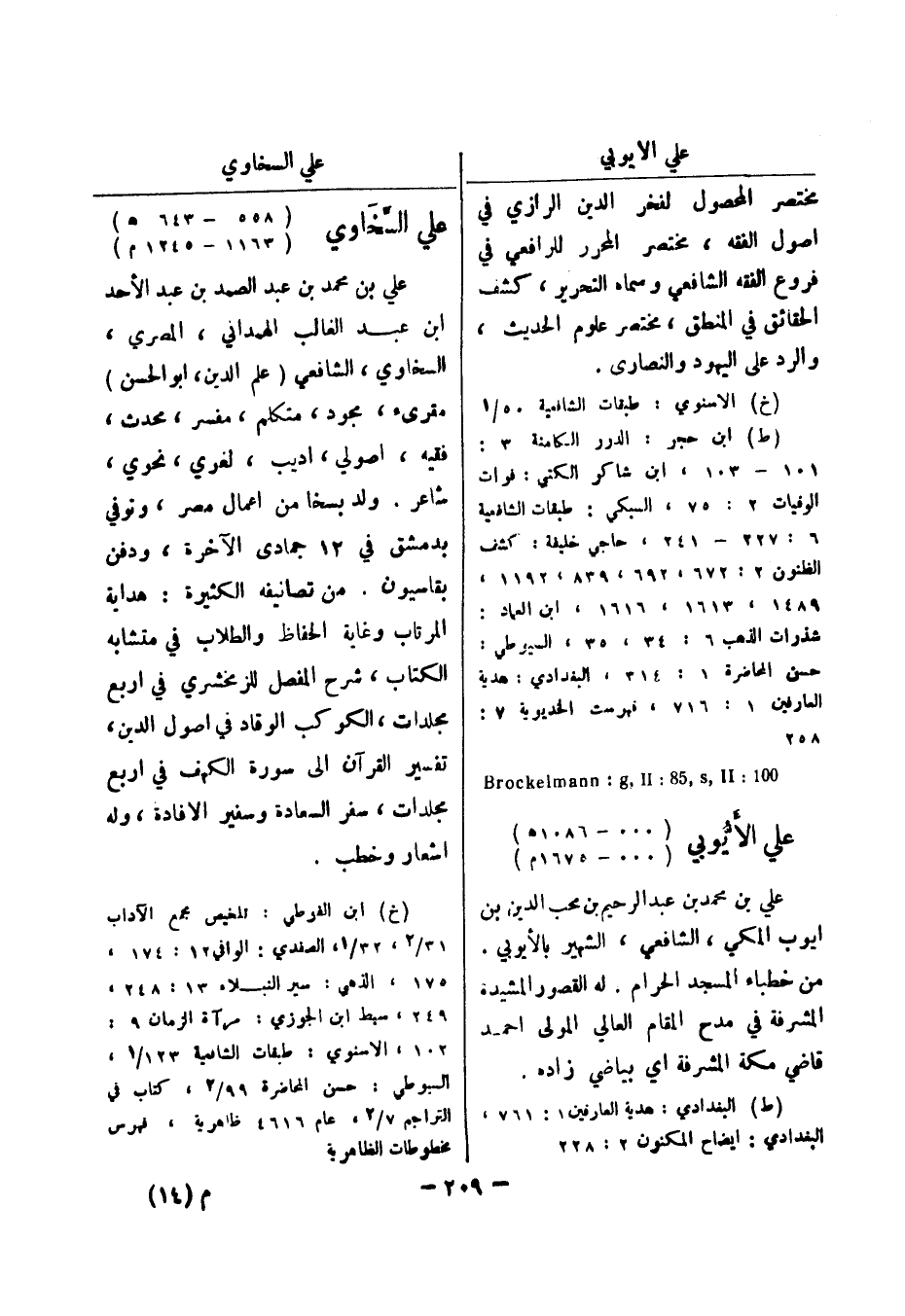100: Brockelmann: g , II ; 58 , s , II علي الايوبي (..- 1086 هـ) (..- 1675 م) علي بن محمد بن عبد الرحيم بن محب الدين بن ايوب المكي، الشافعي، الشهير بالايوبي.