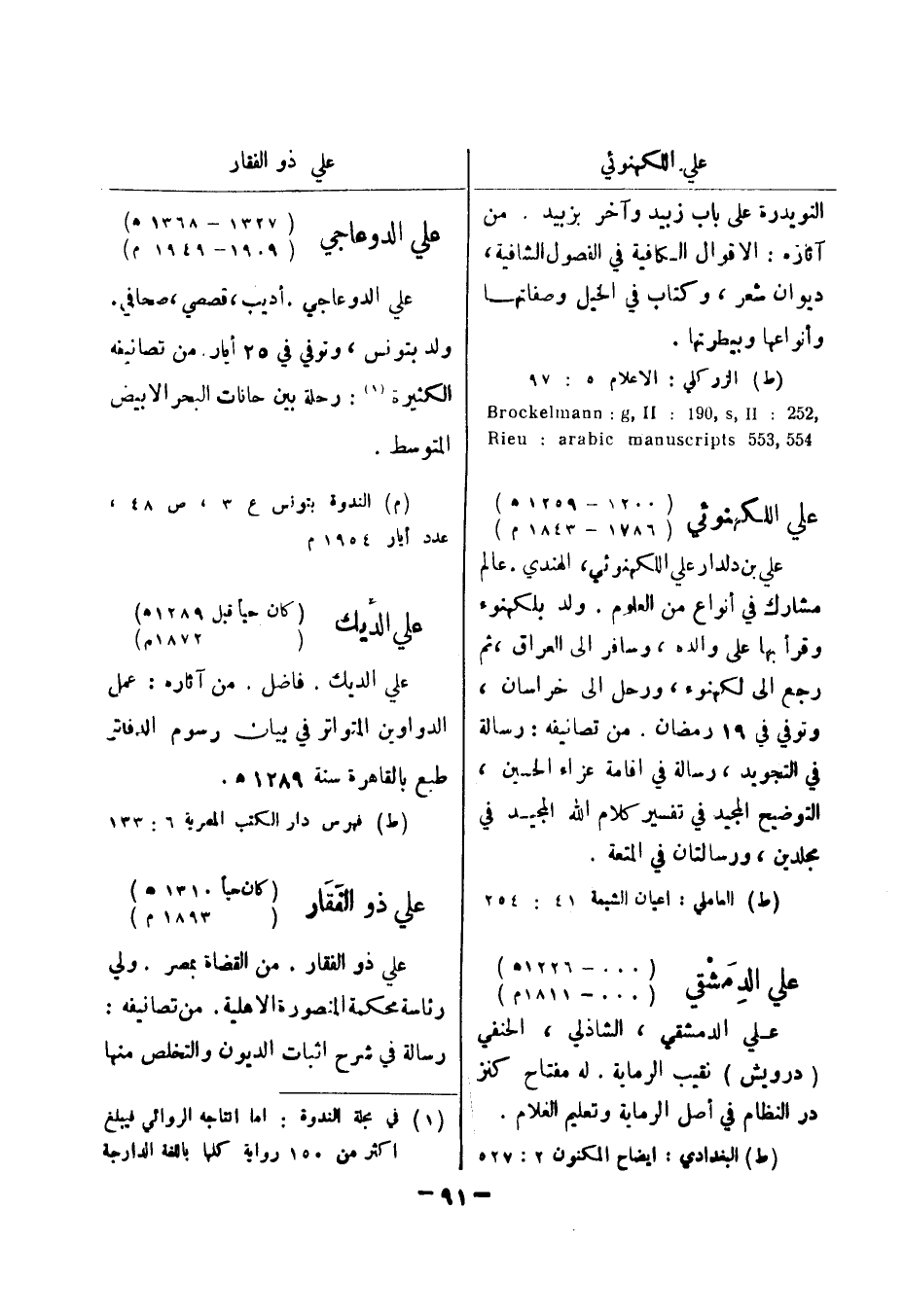 (ط) الزر كلي: الاعلام 5: 97 , 252: Brockelmann: g , II: 091 , s , II 554 , 553 Rieu: arabic manuscripts علي اللكهنوئي (1200 - 1259 هـ) (1786 - 1843 م) علي بن دلدار علي اللكهنوئي، الهندي.