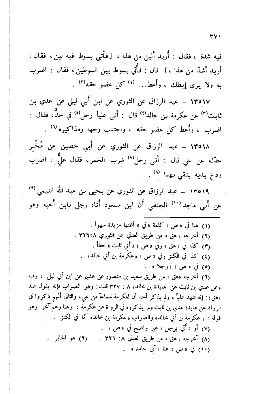١٣٥١٨ - عَنِ الثَّوْرِيِّ، عَنِ أَبِي حُصَيْنٍ، عَنْ مُخْبِرٍ، حَدَّثَهُ، عَنْ عَلِيٍّ قَالَ: أَتَى رَجُلٌ شَرِبَ الْخَمْرَ، فَقَالَ عَلِيٌّ: «اضْرِبِ وَدَعْ يَدَيْهِ يَتَّقِ بِهِمَا»
