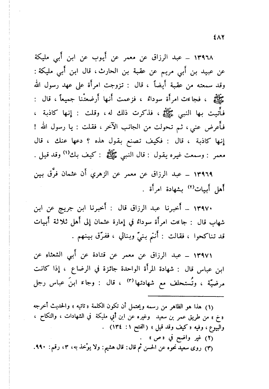 ١٣٩٧٠ - عَبْدُ الرَّزَّاقِ قَالَ: أَخْبَرَنَا ابْنُ جُرَيْجٍ، عَنِ ابْنِ شِهَابٍ قَالَ: " جَاءَتِ امْرَأَةٌ سَوْدَاءُ فِي إِمَارَةِ عُثْمَانَ إِلَى أَهْلِ ثَلَاثَةِ أَبْيَاتٍ قَدْ تَنَاكَحُوا، فَقَالَتْ: أَنْتُمْ بَنِيَّ، وَبَنَاتِي فَفُرِّقَ بَيْنَهُمْ "