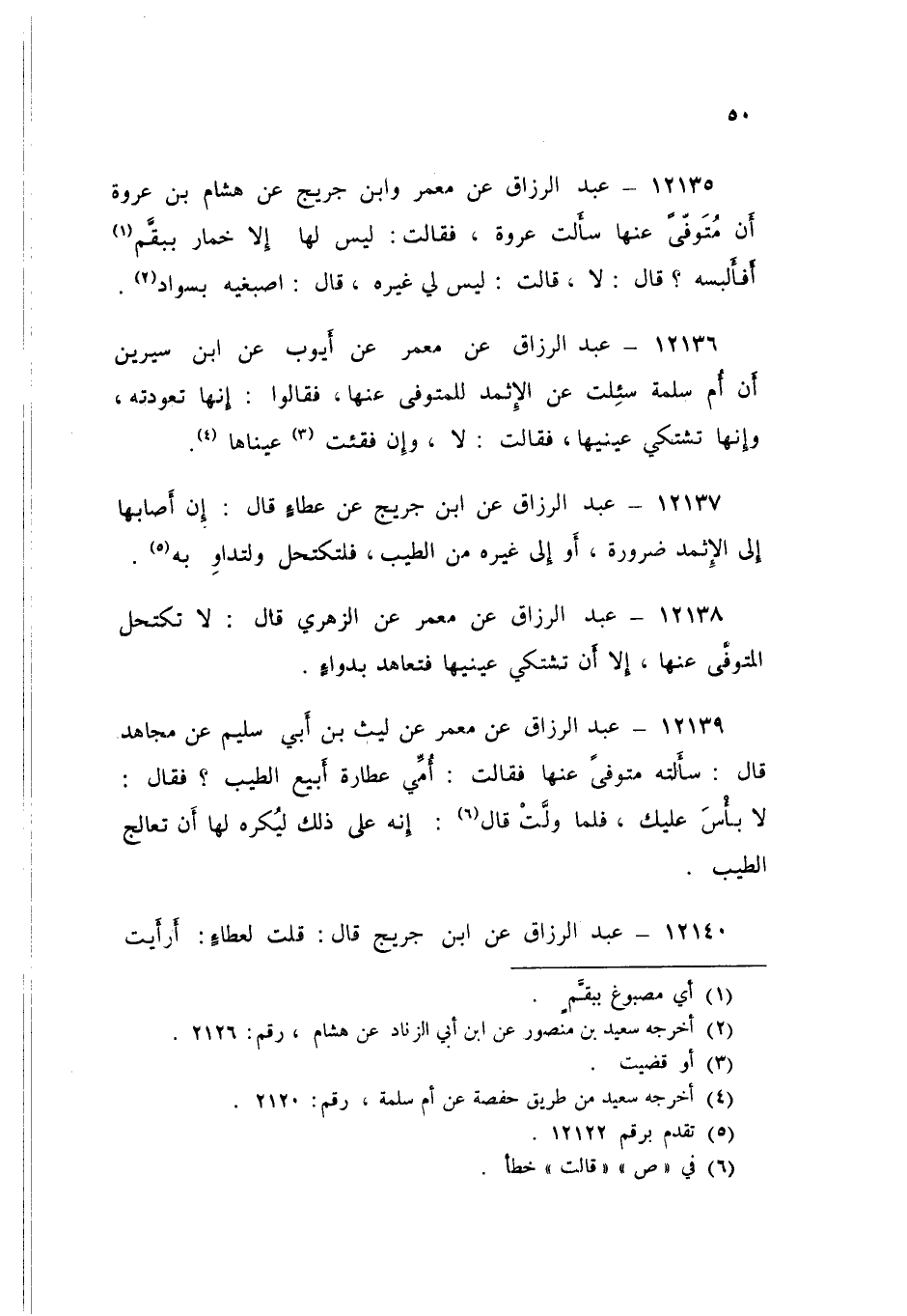 ١٢١٣٨ - عَنْ مَعْمَرٍ، عَنِ الزُّهْرِيِّ، قَالُ: «لَا تَكْتَحِلُ الْمُتَوَفَّى عَنْهَا إِلَّا أَنْ تَشْتَكِيَ عَيْنَيْهَا فَتُعَاهَدَ بِدَوَاءٍ»