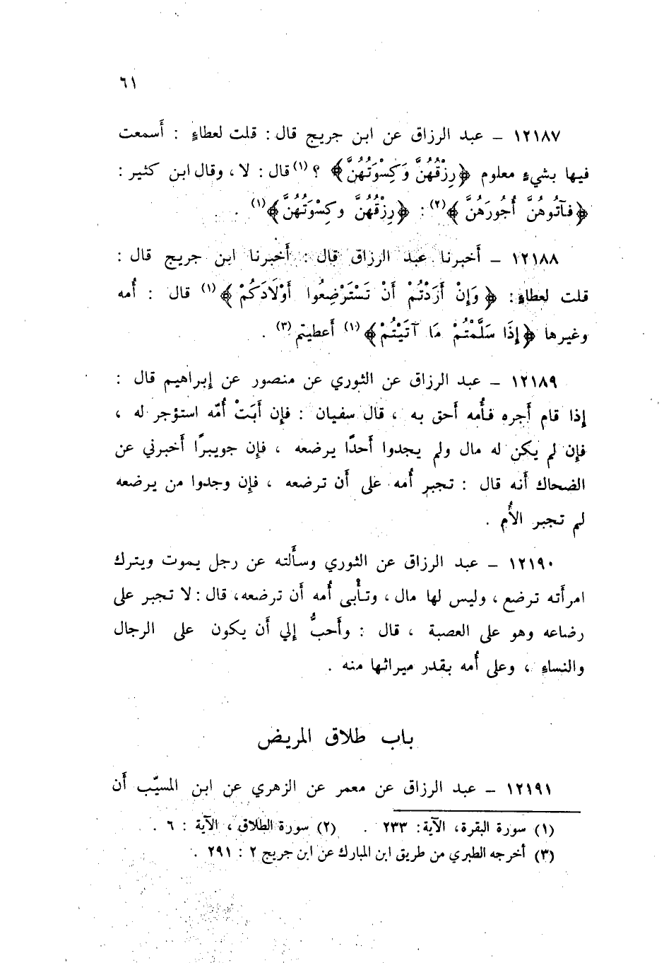 ١٢١٨٨ - عَبْدُ الرَّزَّاقِ قَالَ: أَخْبَرَنَا ابْنُ جُرَيْجٍ قَالَ: قُلْتُ لِعَطَاءٍ: {وَإِنْ أَرَدْتُمْ أَنْ تَسْتَرْضِعُوا أَوْلَادَكُمْ} [البقرة: ٢٣٣]؟ قَالَ: " أُمُّهُ، وَغَيْرُهَا {إِذَا سَلَّمْتُمْ مَا آتَيْتُمْ} [البقرة: ٢٣٣] أَعْطَيْتُمْ "