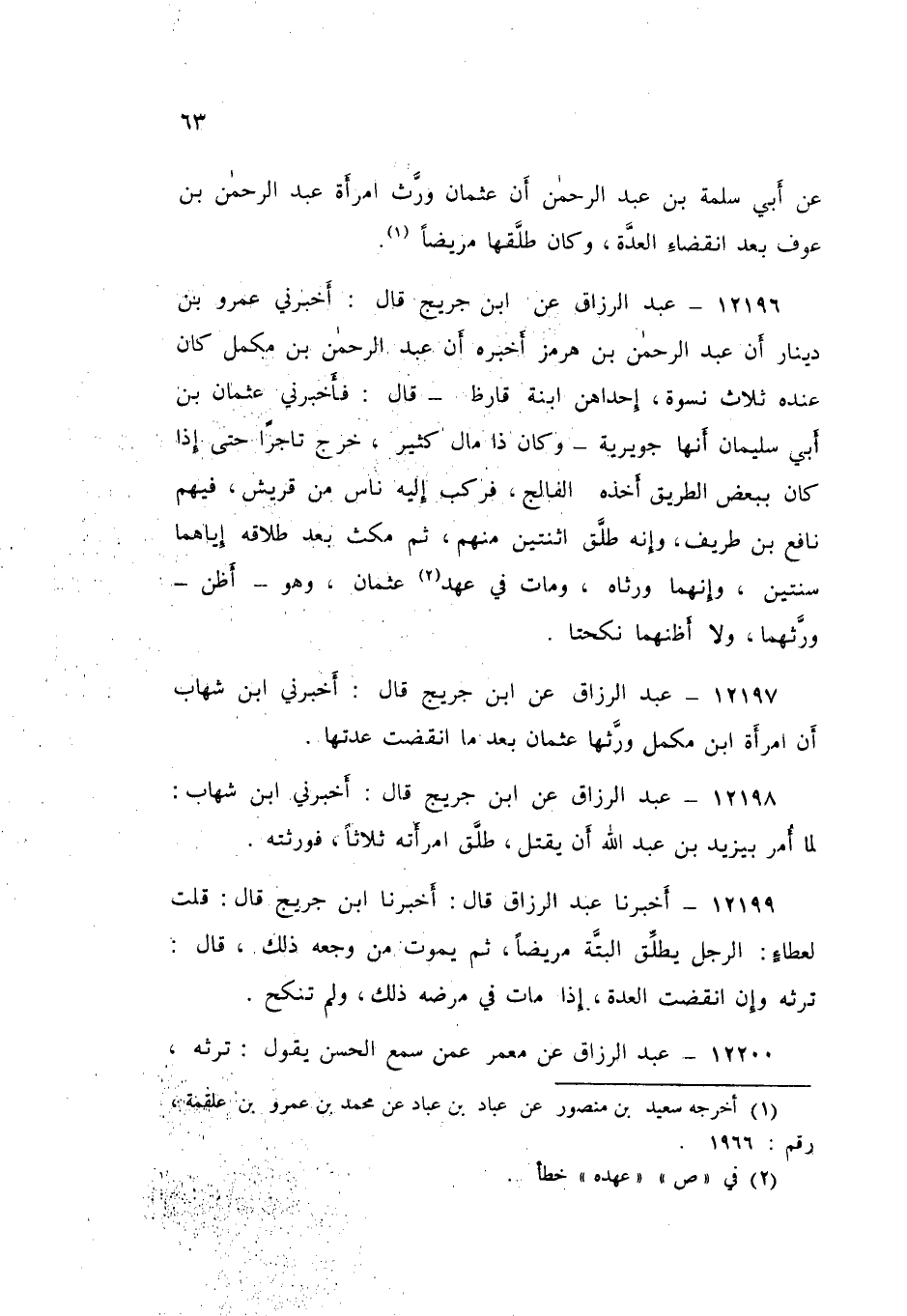 ١٢١٩٧ - عَنِ ابْنِ جُرَيْجٍ قَالَ: أَخْبَرَنِي ابْنُ شِهَابٍ أَنَّ امْرَأَةَ ابْنِ مُكَمِّلٍ وَرَّثَهَا عُثْمَانُ بَعْدَ مَا انْقَضَتْ عِدَّتُهَا "