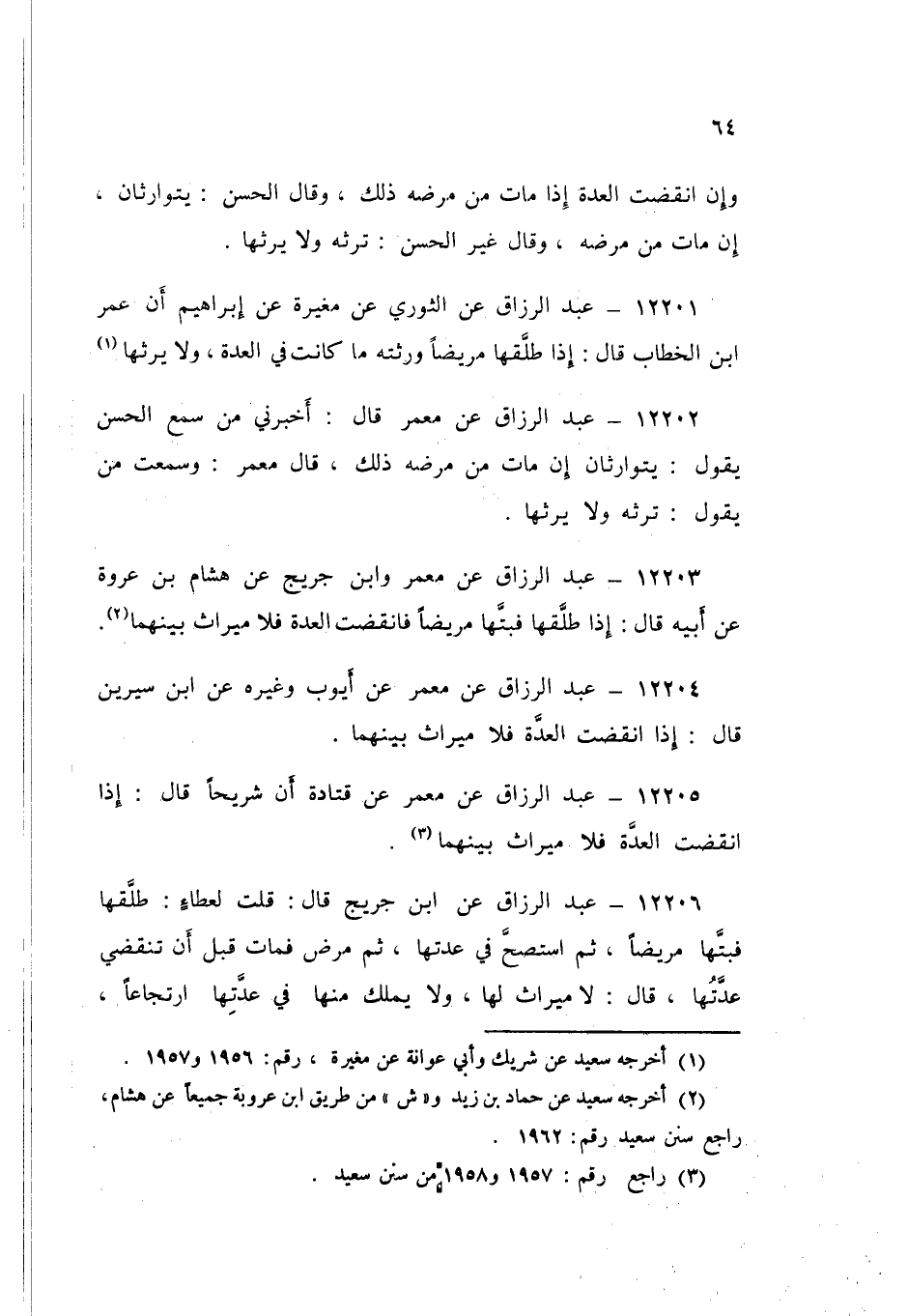 ١٢٢٠٣ - عَنْ مَعْمَرٍ، وَابْنِ جُرَيْجٍ، عَنْ هِشَامِ بْنِ عُرْوَةَ، عَنْ أَبِيهِ قَالَ: «إِذَا طَلَّقَهَا فَبَتَّهَا مَرِيضًا فَانْقَضَتِ الْعِدَّةُ فَلَا مِيرَاثَ بَيْنَهُمَا»