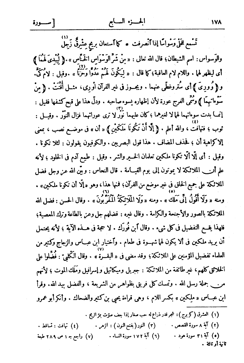 «٨» وَقَالَ الْحَسَنُ: فَضَّلَ اللَّهُ الْمَلَائِكَةَ بِالصُّوَرِ. وَالْأَجْنِحَةِ وَالْكَرَامَةِ. وَقَالَ غَيْرُهُ: فَضَّلَهُمْ جَلَّ وَعَزَّ بِالطَّاعَةِ وَتَرْكِ الْمَعْصِيَةِ، فَلِهَذَا يَقَعُ التَّفْضِيلُ في كل شي. وَقَالَ ابْنُ فُورَكَ. لَا حُجَّةَ فِي هَذِهِ الْآيَةِ، لِأَنَّهُ يَحْتَمِلُ أَنْ يُرِيدَ مَلَكَيْنِ فِي أَلَّا يَكُونَ لَهُمَا شَهْوَةٌ فِي طَعَامٍ. وَاخْتِيَارُ ابْنِ عَبَّاسٍ وَالزَّجَّاجِ وَكَثِيرٍ مِنَ الْعُلَمَاءِ تَفْضِيلُ الْمُؤْمِنِينَ عَلَى الْمَلَائِكَةِ، وَقَدْ مَضَى فِي الْبَقَرَةِ «٩». وَقَالَ الْكَلْبِيُّ: فُضِّلُوا عَلَى الْخَلَائِقِ كُلِّهِمْ، غَيْرَ طَائِفَةٍ مِنَ الْمَلَائِكَةِ: جِبْرِيلَ وَمِيكَائِيلَ وَإِسْرَافِيلَ وَمَلَكَ الْمَوْتِ، لِأَنَّهُمْ مِنْ جُمْلَةِ رُسُلِ اللَّهِ. وَتَمَسَّكَ كُلُّ فَرِيقٍ بِظَوَاهِرَ مِنَ الشَّرِيعَةِ، وَالْفَضْلُ بِيَدِ اللَّهِ. وَقَرَأَ ابْنُ عَبَّاسٍ" مَلِكَيْنِ" بِكَسْرِ اللَّامِ، وَهِيَ قِرَاءَةُ يَحْيَى بْنِ أَبِي «١٠» كَثِيرٍ وَالضَّحَّاكِ. وأنكر