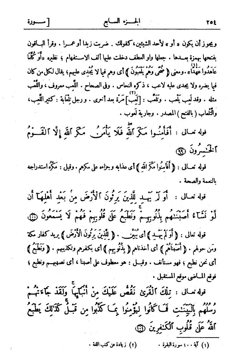أَفَأَمِنُوا مَكْرَ اللَّهِ فَلا يَأْمَنُ مَكْرَ اللَّهِ إِلاَّ الْقَوْمُ الْخاسِرُونَ (٩٩)
