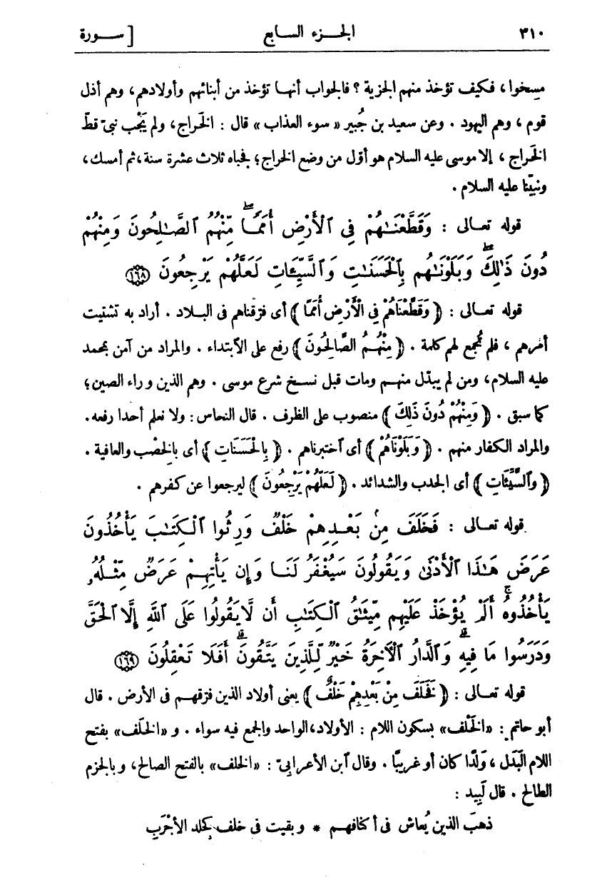 وَقَطَّعْناهُمْ فِي الْأَرْضِ أُمَماً مِنْهُمُ الصَّالِحُونَ وَمِنْهُمْ دُونَ ذلِكَ وَبَلَوْناهُمْ بِالْحَسَناتِ وَالسَّيِّئاتِ لَعَلَّهُمْ يَرْجِعُونَ (١٦٨)