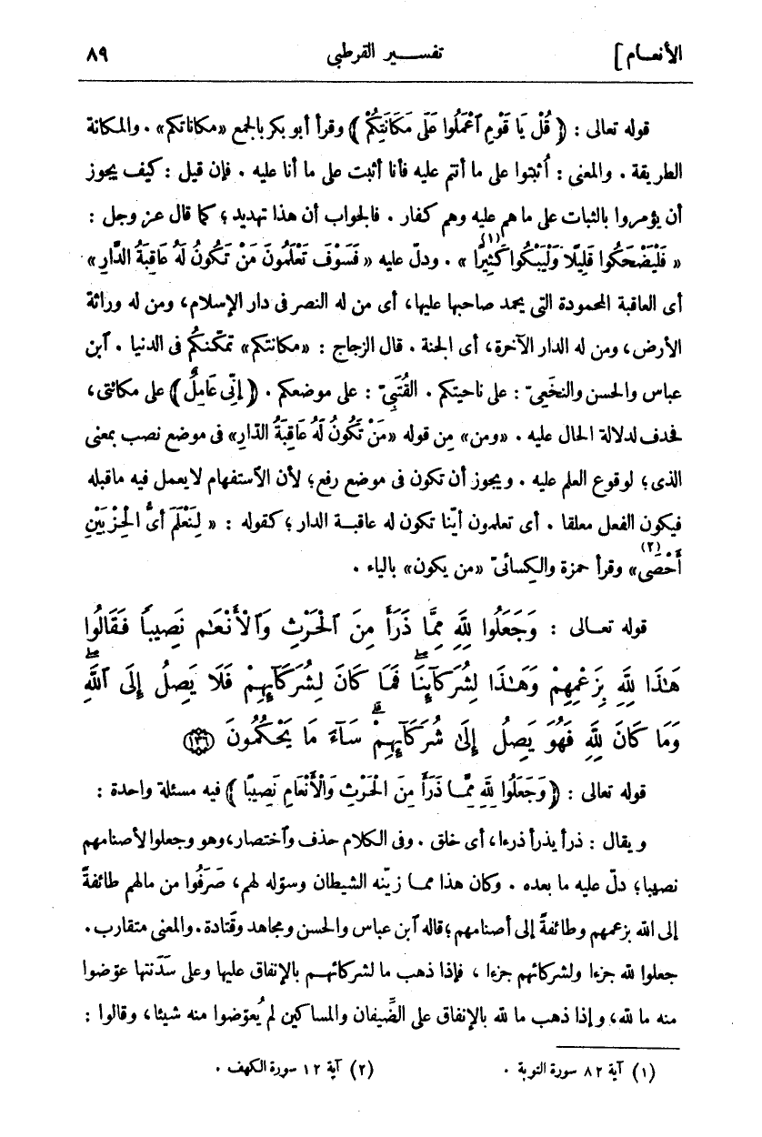 قَوْلُهُ تَعَالَى: (وَجَعَلُوا لِلَّهِ مِمَّا ذَرَأَ مِنَ الْحَرْثِ وَالْأَنْعامِ نَصِيباً) فِيهِ مَسْأَلَةٌ وَاحِدَةٌ وَيُقَالُ: ذَرَأَ يَذْرَأُ ذَرْءًا، أَيْ خَلَقَ. وَفِي الْكَلَامِ حَذْفٌ وَاخْتِصَارٌ «٣»، وَهُوَ وَجَعَلُوا لِأَصْنَامِهِمْ نَصِيبًا، دَلَّ عَلَيْهِ مَا بَعْدَهُ. وَكَانَ هذا مما زينه الشيطان وسؤله لهم، (حتى «٤» صرفوا من ماله طَائِفَةً إِلَى اللَّهِ بِزَعْمِهِمْ وَطَائِفَةً إِلَى أَصْنَامِهِمْ، قَالَهُ ابْنُ عَبَّاسٍ وَالْحَسَنُ وَمُجَاهِدٌ وَقَتَادَةُ. وَالْمَعْنَى مُتَقَارِبٌ. جَعَلُوا لِلَّهِ جُزْءًا وَلِشُرَكَائِهِمْ جُزْءًا، فَإِذَا ذَهَبَ مَا لِشُرَكَائِهِمْ بِالْإِنْفَاقِ عَلَيْهَا وَعَلَى سَدَنَتِهَا عُوِّضُوا مِنْهُ مَا لِلَّهِ، وَإِذَا ذَهَبَ مَا لله بالإنفاق عَلَى الضِّيفَانِ وَالْمَسَاكِينِ لَمْ يُعَوَّضُوا مِنْهُ شَيْئًا، وقالوا: