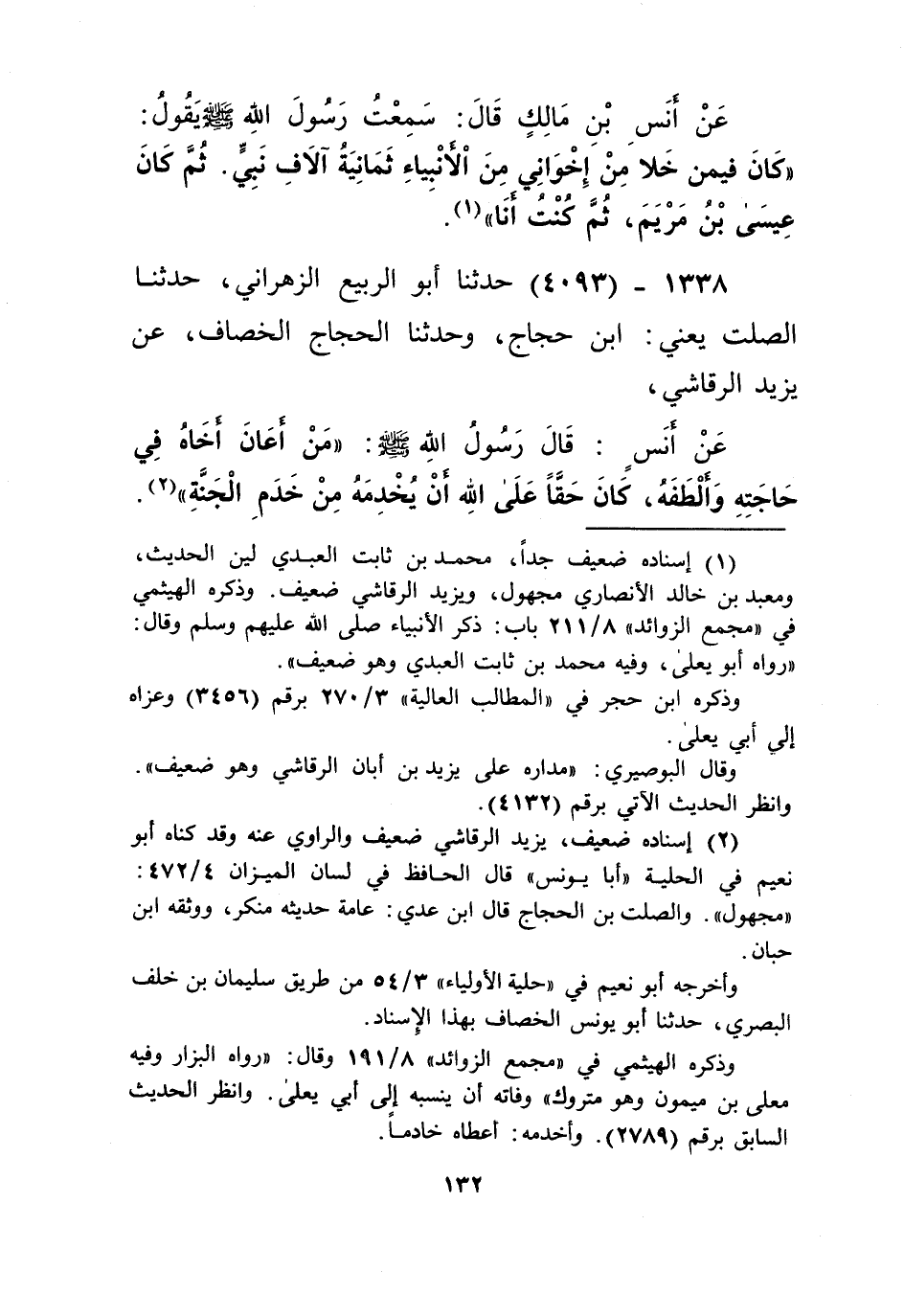 4093 - حَدَّثَنَا أَبُو الرَّبِيعِ الزَّهْرَانِيُّ، حَدَّثَنَا الصَّلْتُ يَعْنِي ابْنَ حَجَّاجٍ، وَحَدَّثَنَا الْحَجَّاجُ الْخَصَّافُ، عَنْ يَزِيدَ الرَّقَاشِيِّ، عَنْ أَنَسٍ، قَالَ رَسُولُ اللَّهِ صَلَّى اللهُ عَلَيْهِ وَسَلَّمَ: «§مَنْ أَعَانَ أَخَاهُ فِي حَاجَتِهِ وَأَلْطَفَهُ كَانَ حَقًّا عَلَى اللَّهِ أَنْ يُخْدِمَهُ مِنْ خَدَمِ الْجَنَّةِ» Kإسناده ضعيف