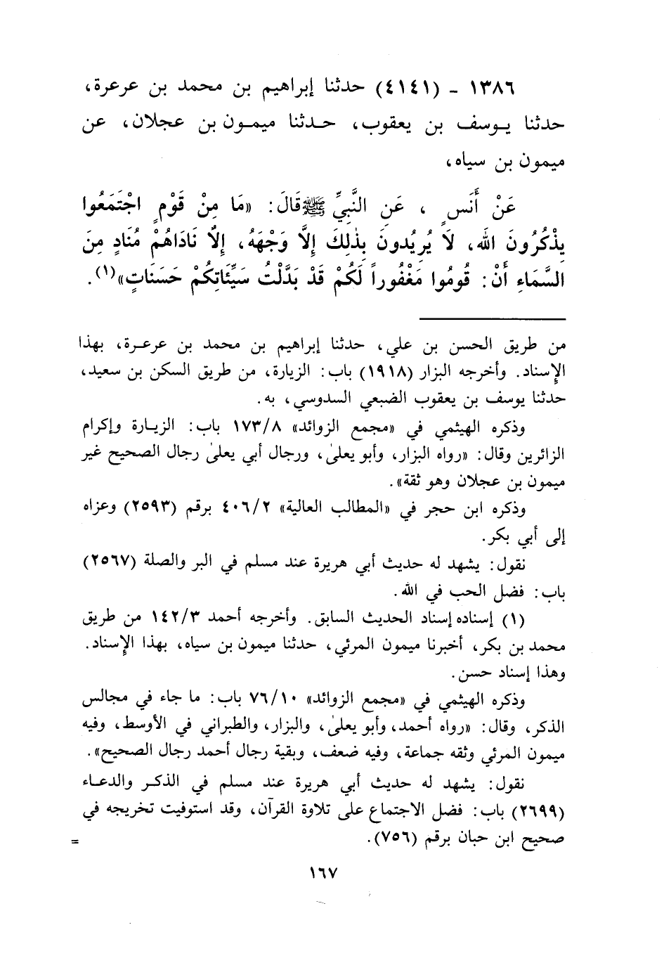 4141 - حَدَّثَنَا إِبْرَاهِيمُ بْنُ مُحَمَّدِ بْنِ عَرْعَرَةَ، حَدَّثَنَا يُوسُفُ بْنُ يَعْقُوبَ، حَدَّثَنَا مَيْمُونُ بْنُ عَجْلَانَ، عَنْ مَيْمُونِ بْنِ سِيَاهٍ، عَنْ أَنَسٍ، عَنِ النَّبِيِّ صَلَّى اللهُ عَلَيْهِ وَسَلَّمَ قَالَ: " §مَا مِنْ قَوْمٍ اجْتَمَعُوا يَذْكُرُونَ اللَّهَ، لَا يُرِيدُونَ بِذَلِكَ إِلَّا وَجْهَهُ، إِلَّا نَادَاهُمْ مُنَادٍ مِنَ السَّمَاءِ: أَنْ قُومُوا مَغْفُورًا لَكُمْ، قَدْ بَدَّلْتُ سَيِّئَاتِكُمْ حَسَنَاتٍ "