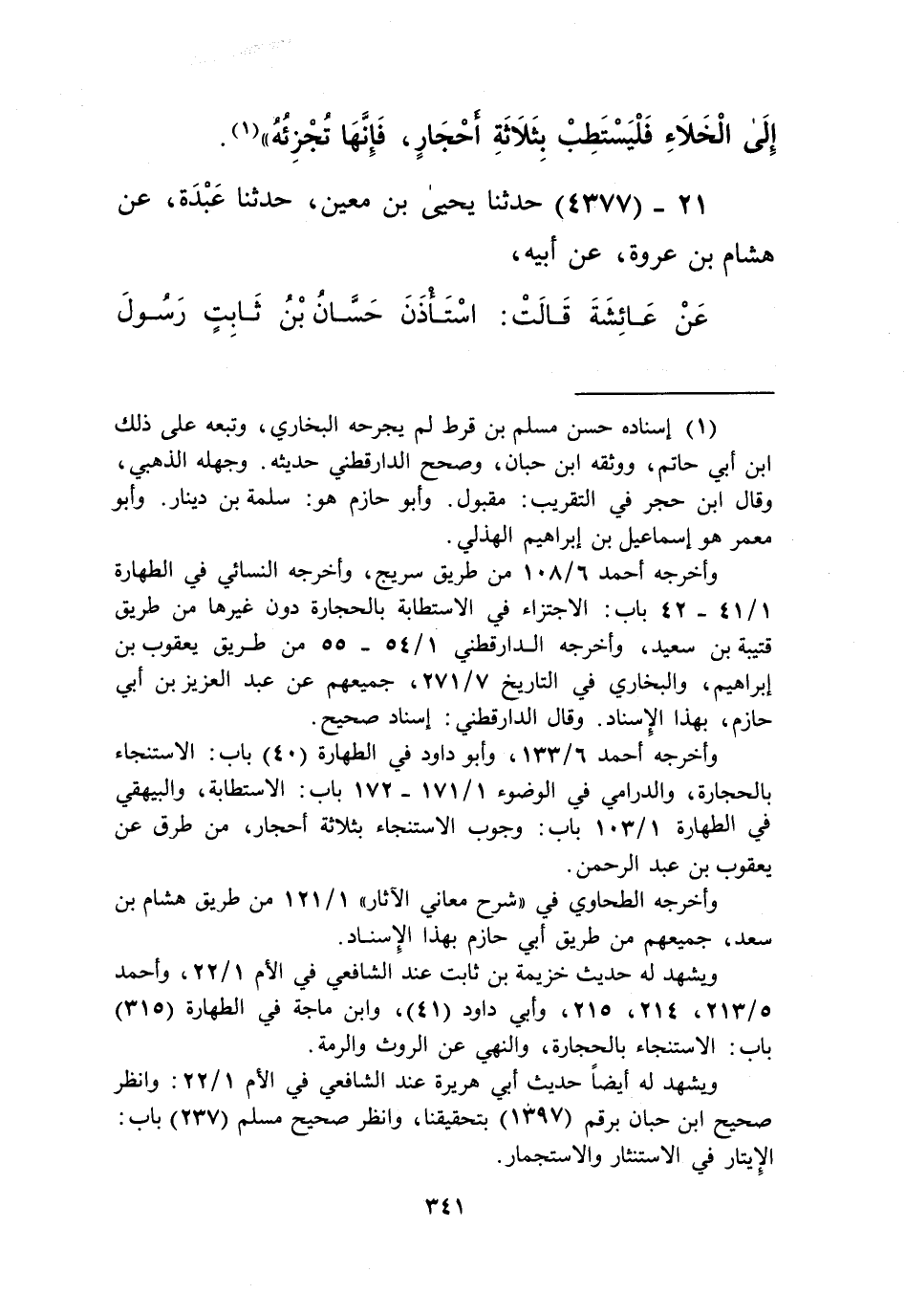 4377 - حَدَّثَنَا يَحْيَى بْنُ مَعِينٍ، حَدَّثَنَا عَبْدَةُ، عَنْ هِشَامِ بْنِ عُرْوَةَ، عَنْ أَبِيهِ، عَنْ عَائِشَةَ قَالَتِ: اسْتَأْذَنَ حَسَّانُ بْنُ ثَابِتٍ رَسُولَ اللَّهِ صَلَّى اللهُ عَلَيْهِ وَسَلَّمَ فِي هِجَاءِ الْمُشْرِكِينَ، قَالَ: «§فَكَيْفَ بِنَسَبِي فِيهِمْ؟»، قَالَ: لَأَسُلَّنَّكَ مِنْهُمْ كَمَا تُسَلُّ الشَّعْرَةُ مِنَ الْعَجِينِKإسناده صحيح