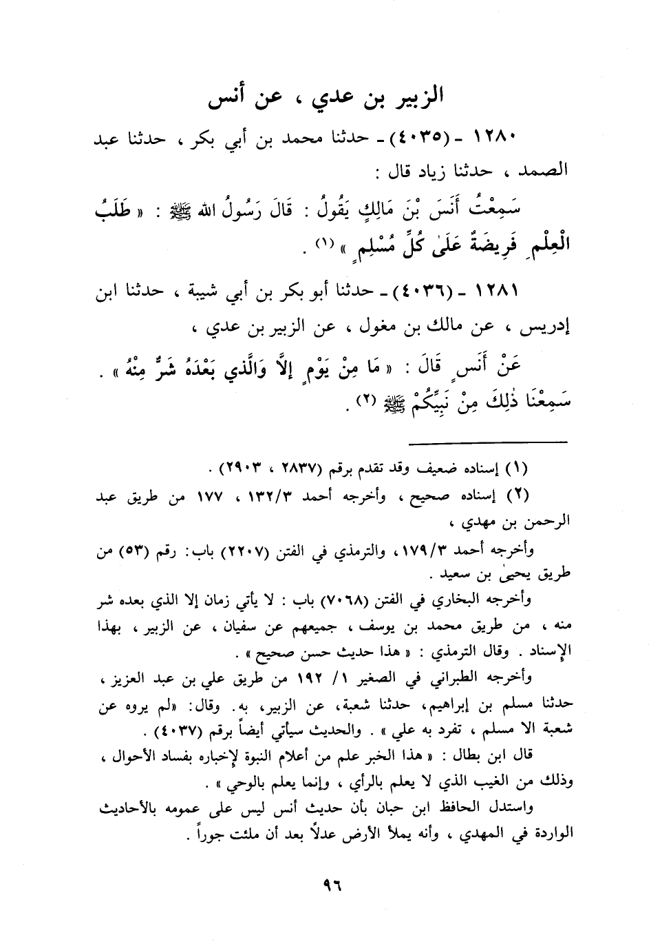 4035 - حَدَّثَنَا مُحَمَّدُ بْنُ أَبِي بَكْرٍ، حَدَّثَنَا عَبْدُ الصَّمَدِ، حَدَّثَنَا زِيَادٌ، قَالَ: سَمِعْتُ أَنَسَ بْنَ مَالِكٍ يَقُولُ: قَالَ رَسُولُ اللَّهِ صَلَّى اللهُ عَلَيْهِ وَسَلَّمَ: «§طَلَبُ الْعِلْمِ فَرِيضَةٌ عَلَى كُلِّ مُسْلِمٍ» Kإسناده ضعيف
