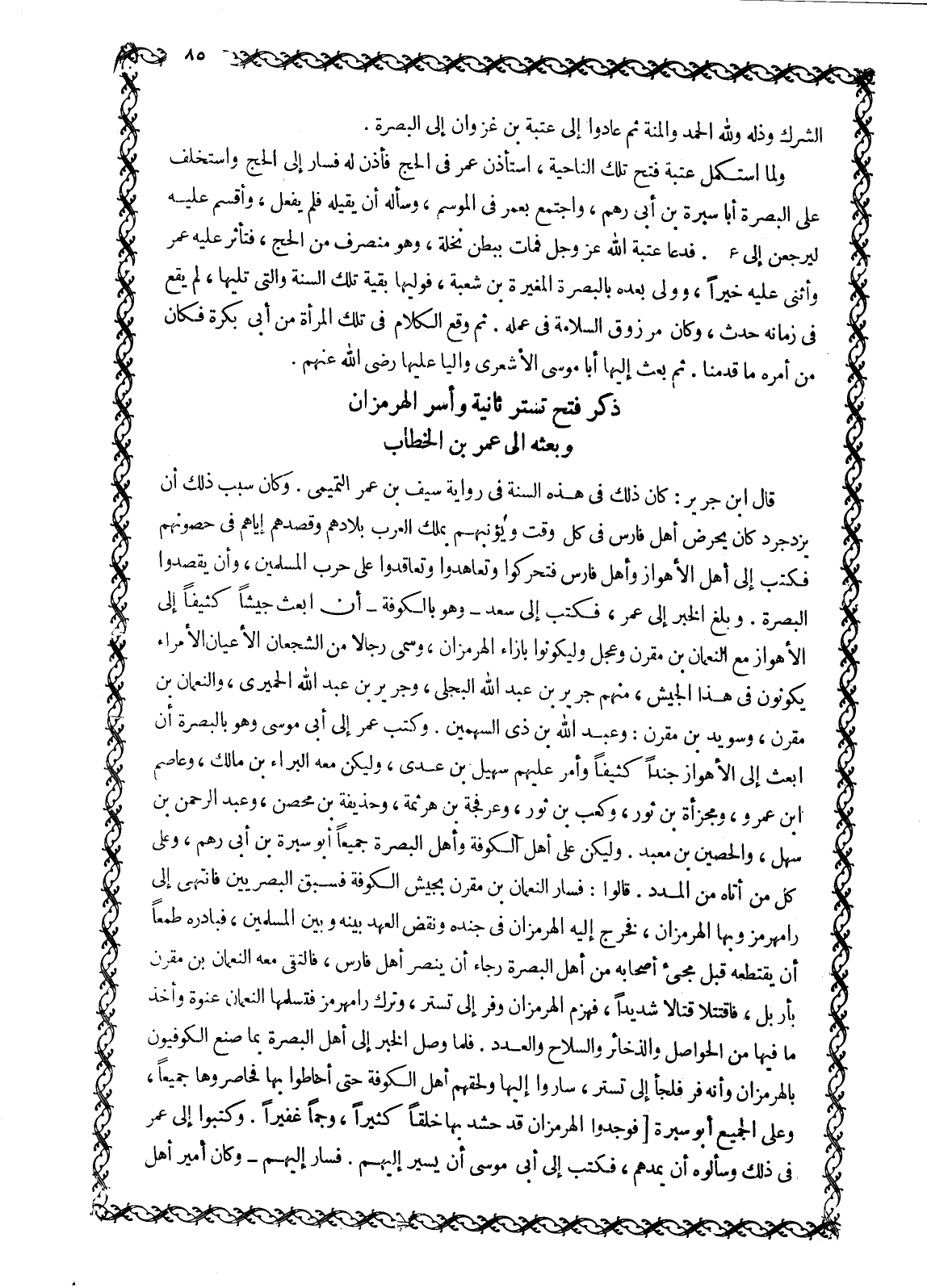 ذِكْرُ فَتْحِ تُسْتَرَ ثَانِيَةً عَنْوَةً وَالسُّوسِ وَرَامَهُرْمُزَ وَأَسْرِ الْهُرْمُزَانِ وَبَعْثِهِ إِلَى عُمَرَ بْنِ الْخَطَّابِ رَضِيَ اللَّهُ عَنْهُ