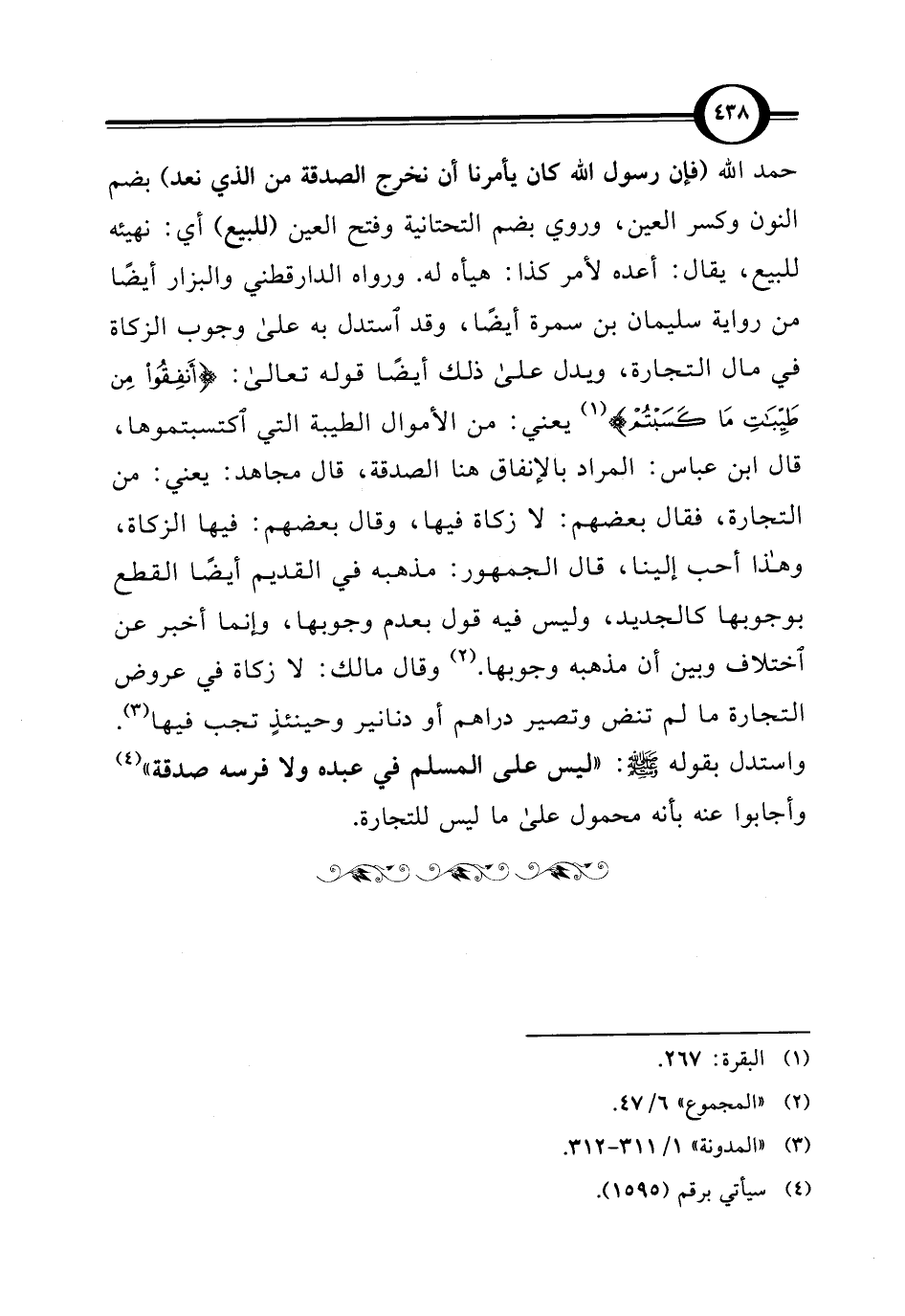 حمد الله (فإن رسول الله كان يأمرنا أن نخرج الصدقة من الذي نعد) بضم النون وكسر العين، وروي بضم التحتانية وفتح العين (للبيع) أي: نهيئه للبيع، يقال: أعده لأمر كذا: هيأه له. ورواه الدارقطني والبزار أيضًا من رواية سليمان بن سمرة أيضًا، وقد استدل به على وجوب الزكاة في مال التجارة، ويدل على ذلك أيضًا قوله تعالى: {أَنْفِقُوا مِنْ طَيِّبَاتِ مَا كَسَبْتُمْ} (¬1) يعني: من الأموال الطيبة التي اكتسبتموها، قال ابن عباس: المراد بالإنفاق هنا الصدقة، قال مجاهد: يعني: من التجارة، فقال بعضهم: لا زكاة فيها، وقال بعضهم: فيها الزكاة، وهذا أحب إلينا، قال الجمهور: مذهبه في القديم أيضًا القطع بوجوبها كالجديد، وليس فيه قول بعدم وجوبها، وإنما أخبر عن اختلاف وبين أن مذهبه وجوبها. (¬2) وقال مالك: لا زكاة في عروض التجارة ما لم تنض وتصير دراهم أو دنانير وحينئذٍ تجب فيها (¬3). واستدل بقوله - صلى الله عليه وسلم -: "ليس على المسلم في عبده ولا فرسه صدقة" (¬4) وأجابوا عنه بأنه محمول على ما ليس للتجارة.
