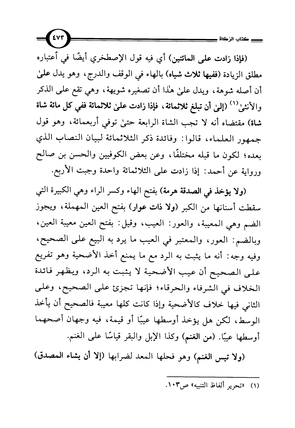 (فإذا زادت على المائتين) أي فيه قول الإصطخري أيضًا في اعتباره مطلق الزيادة (ففيها ثلاث شياه) بالهاء في الوقف والدرج، وهو يدل على أن أصله شوهة، ويدل على هذا أن تصغيره شويهة، وهي تقع على الذكر والأنثى (¬1) (إلى أن تبلغ ثلاثمائة، فإذا زادت على ثلاثمائة ففي كل مائة شاة شاة) مقتضاه أنه لا تجب الشاة الرابعة حتى توفي أربعمائة، وهو قول جمهور العلماء، قالوا: وفائدة ذكر الثلاثمائة لبيان النصاب الذي بعده؛ لكون ما قبله مختلفًا، وعن بعض الكوفيين والحسن بن صالح ورواية عن أحمد: إذا زادت على الثلاثمائة واحدة وجبت الأربع.