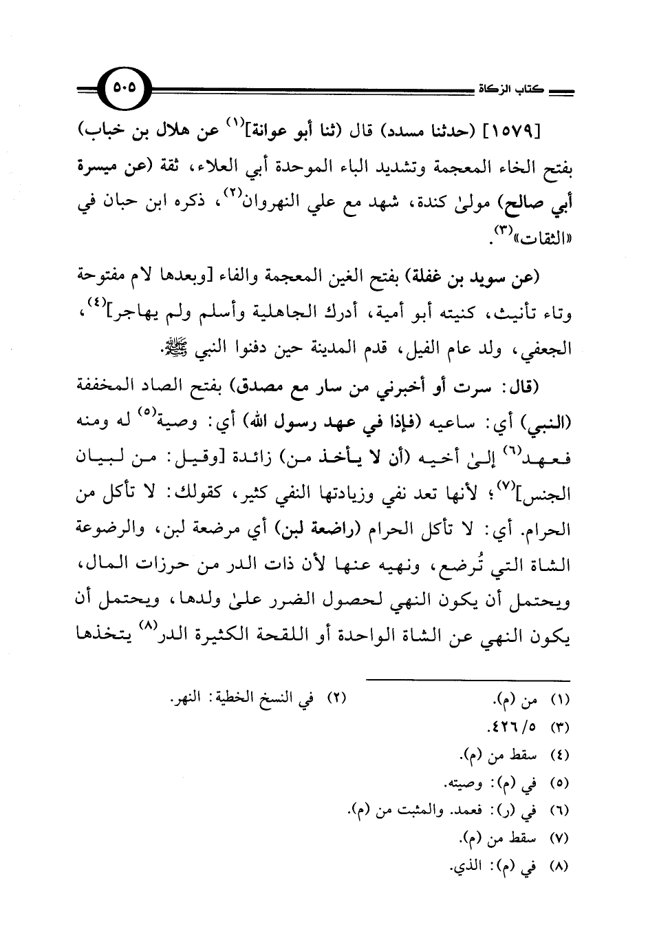 [1579] (حدثنا مسدد) قال (ثنا أبو عوانة] (¬1) عن هلال بن خباب) بفتح الخاء المعجمة وتشديد الباء الموحدة أبي العلاء، ثقة (عن ميسرة أبي صالح) مولى كندة، شهد مع علي النهروان (¬2)، ذكره ابن حبان في "الثقات" (¬3).