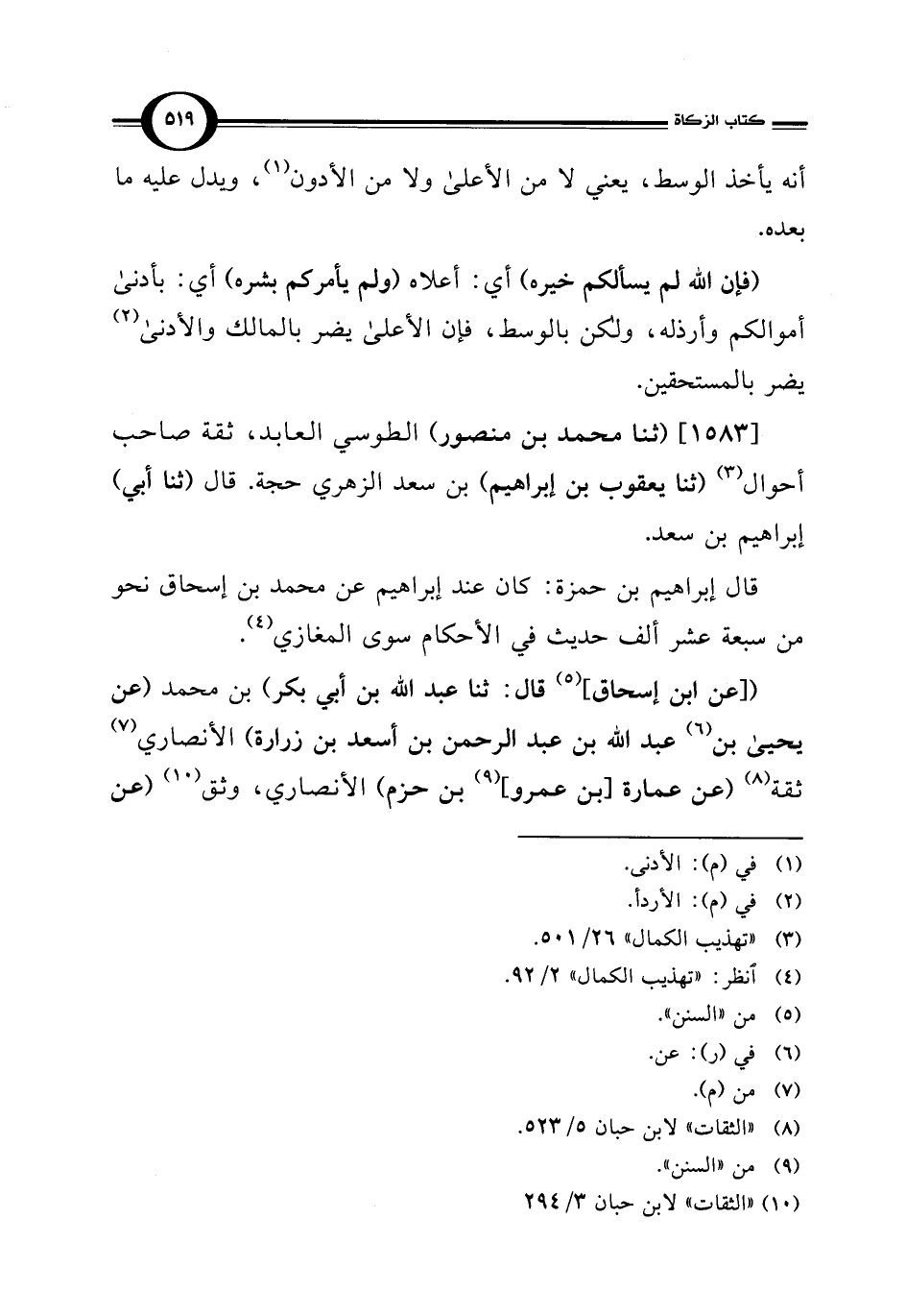 [1583] (ثنا محمد بن منصور) الطوسي العابد، ثقة صاحب أحوال (¬3) (ثنا يعقوب بن إبراهيم) بن سعد الزهري حجة. قال (ثنا أبي) إبراهيم بن سعد.