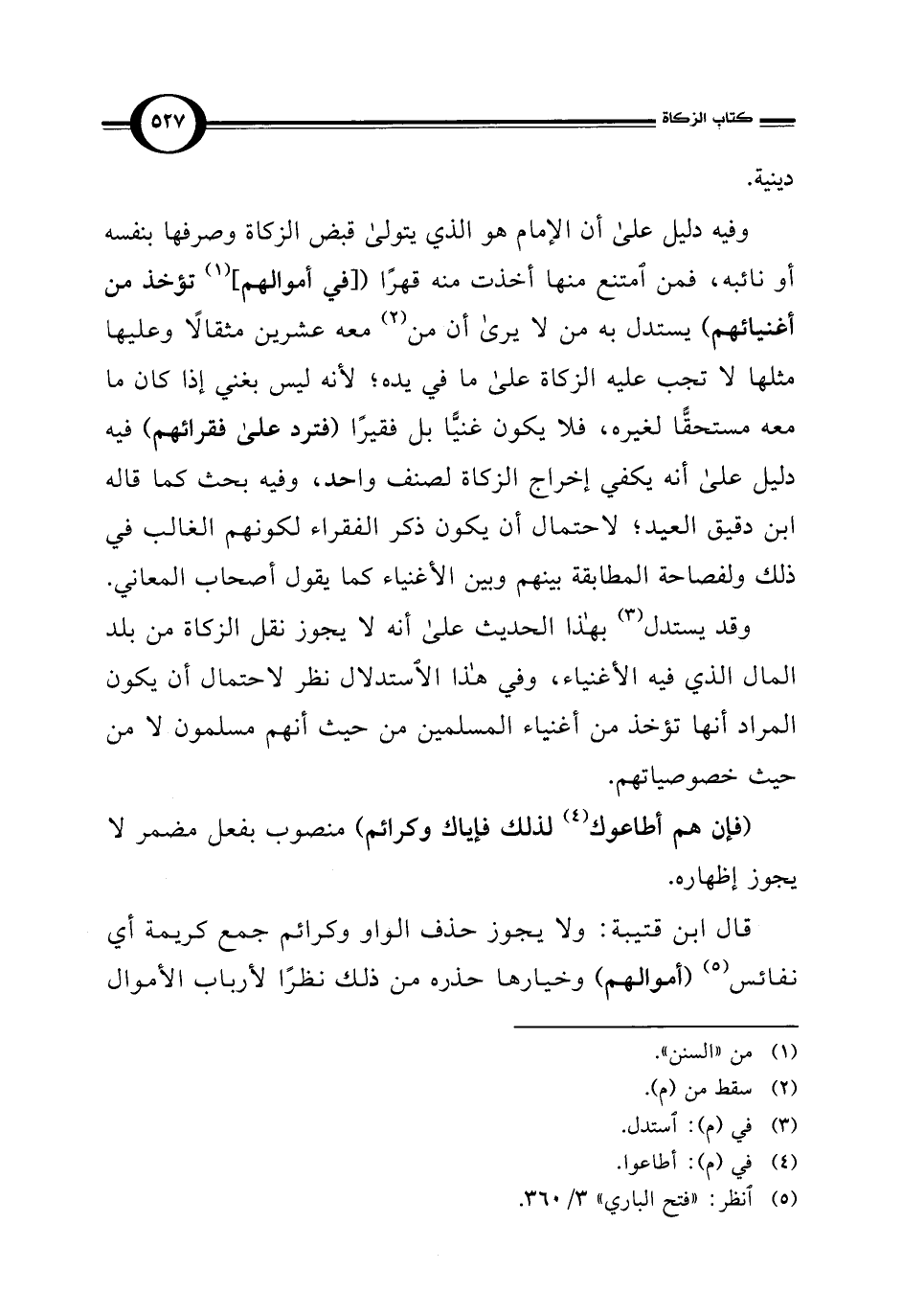 قال ابن قتيبة: ولا يجوز حذف الواو وكرائم جمع كريمة أي نفائس (¬5) (أموالهم) وخيارها حذره من ذلك نظرًا لأرباب الأموال