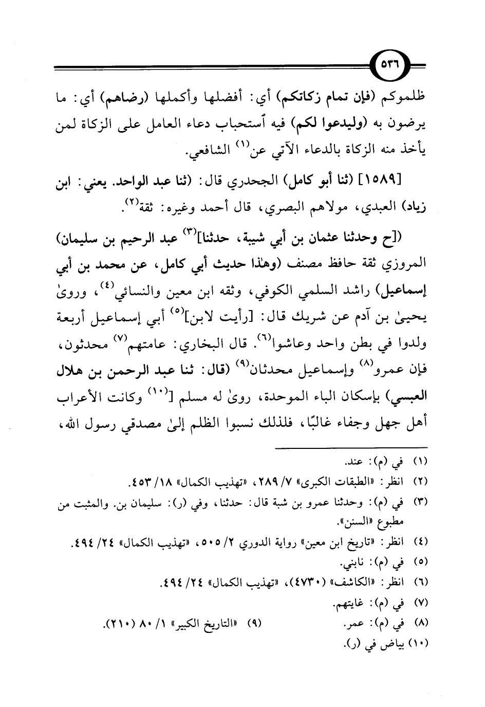 [1589] (ثنا أبو كامل) الجحدري قال: (ثنا عبد الواحد. يعني: ابن زياد) العبدي، مولاهم البصري، قال أحمد وغيره: ثقة (¬2).