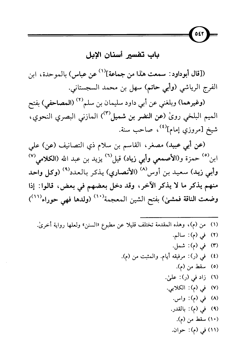 ([قال أبو داود: سمعت هذا من جماعة] (¬1) عن عباس) بالموحدة، ابن الفرج الرياشي (وأبي حاتم) سهل بن محمد السجستاني.
