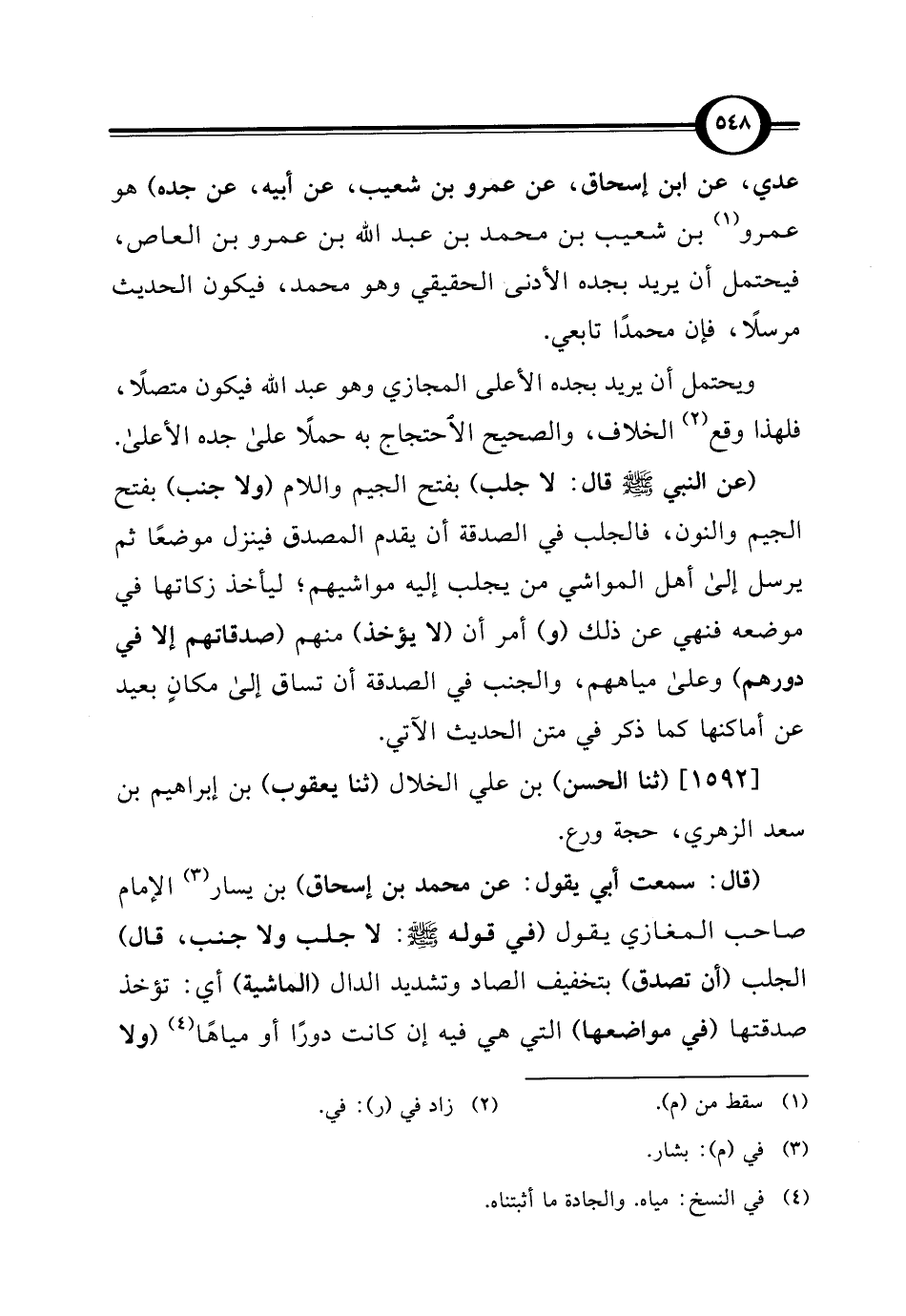 [1592] (ثنا الحسن) بن علي الخلال (ثنا يعقوب) بن إبراهيم بن سعد الزهري، حجة ورع.