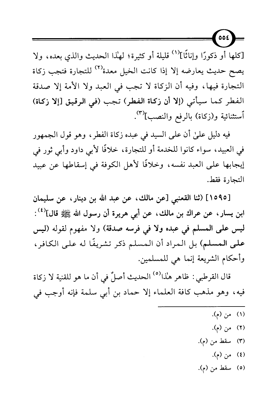 [1595] (ثنا القعنبي [عن مالك، عن عبد الله بن دينار، عن سليمان بن يسار، عن عراك بن مالك، عن أبي هريرة أن رسول الله - صلى الله عليه وسلم - قال] (¬4): ليس على المسلم في عبده ولا في فرسه صدقة) ولا مفهوم لقوله (ليس على المسلم) بل المراد أن المسلم ذكر تشريفًا له على الكافر، وأحكام الشريعة إنما هي للمسلمين.