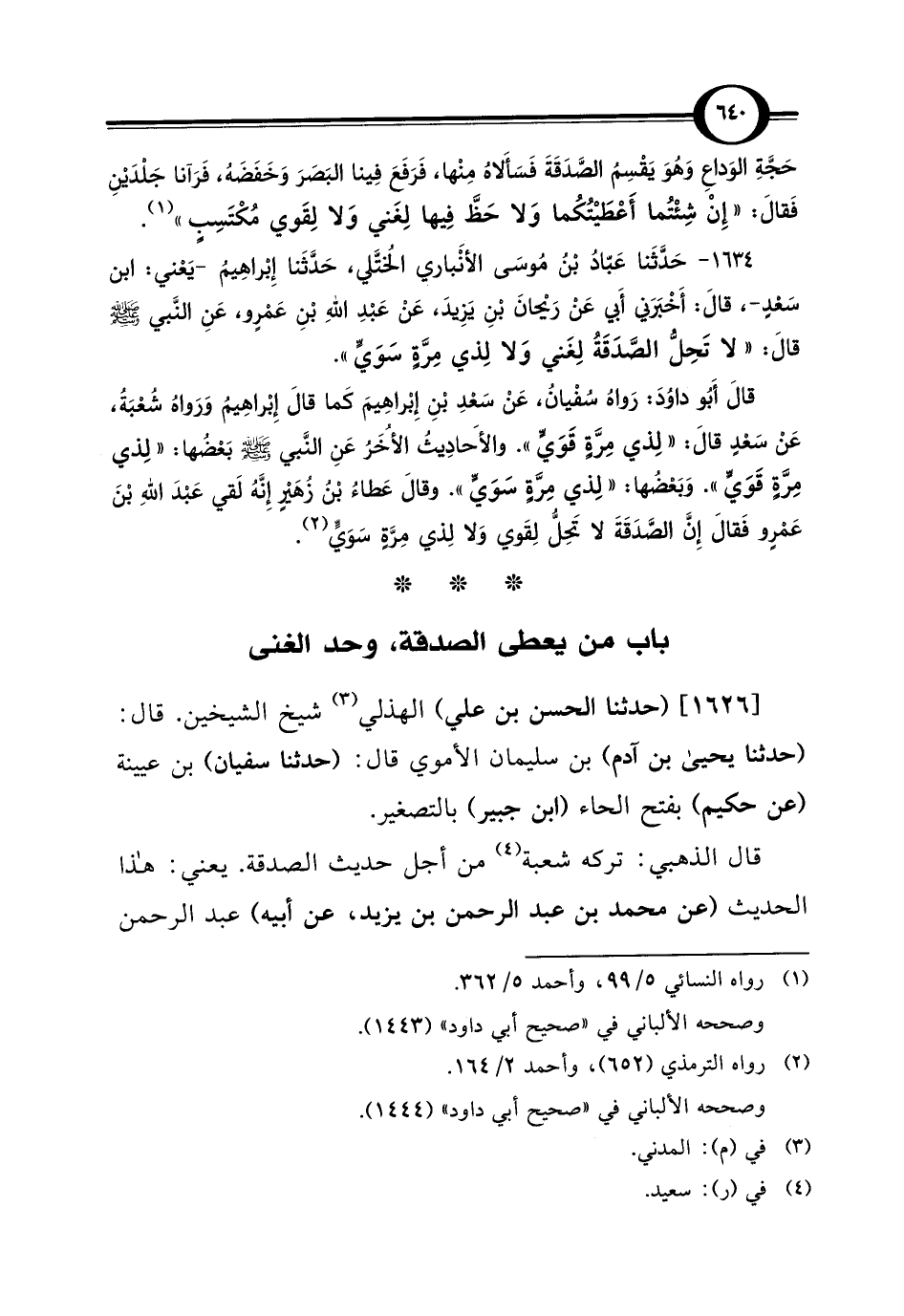 [1626] (حدثنا الحسن بن علي) الهذلي (¬3) شيخ الشيخين. قال: (حدثنا يحيى بن آدم) بن سليمان الأموي قال: (حدثنا سفيان) بن عيينة (عن حكيم) بفتح الحاء (ابن جبير) بالتصغير.