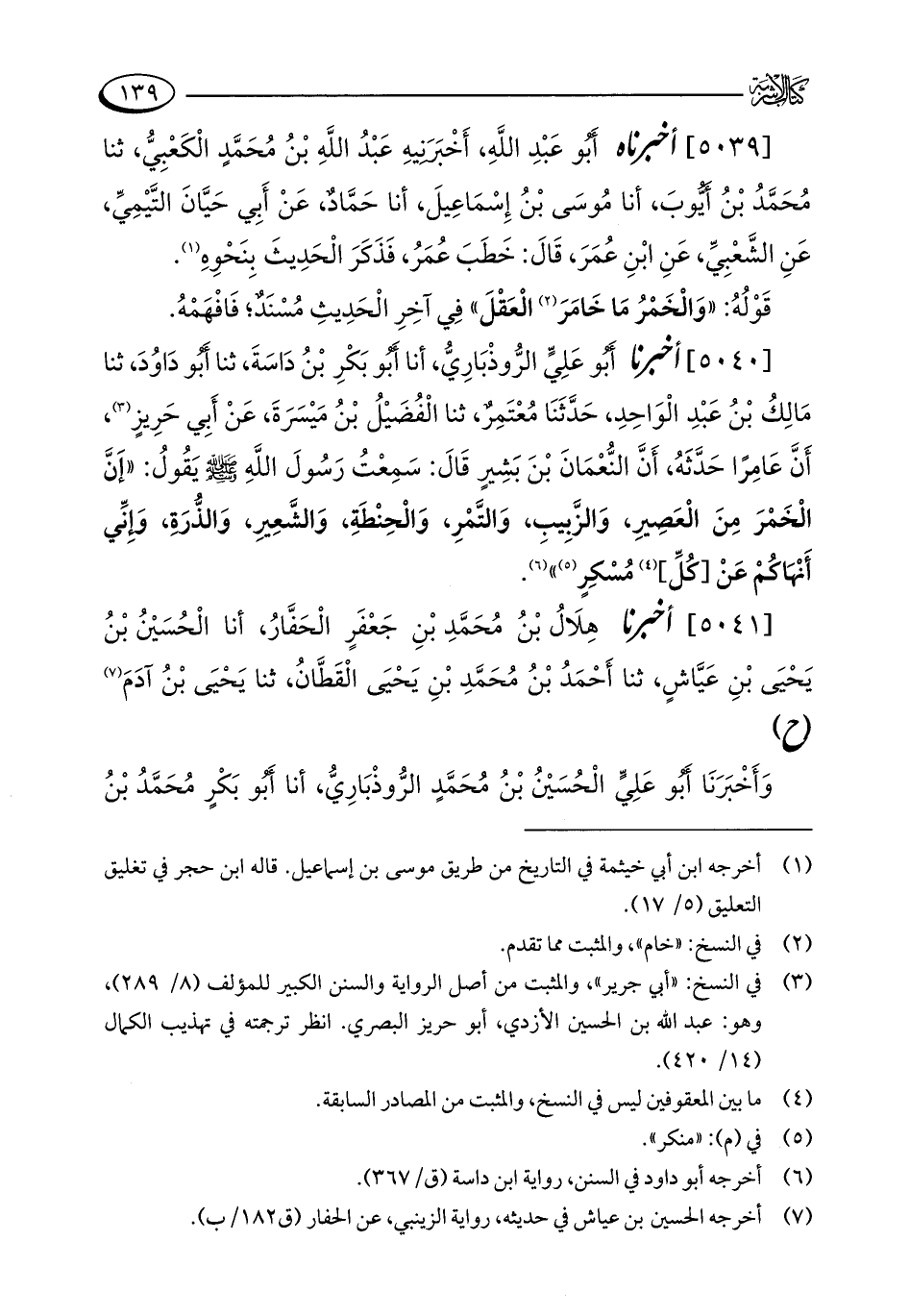[5039] أخبرناه أَبُو عَبْدِ اللَّهِ، أَخْبَرَنِيهِ عَبْدُ اللَّهِ بْنُ مُحَمَّدٍ الْكَعْبِيُّ، ثنا مُحَمَّدُ بْنُ أَيُّوبَ، أنا مُوسَى بْنُ إِسْمَاعِيلَ، أنا حَمَّادٌ، عَنْ أَبِي حَيَّانَ التَّيْمِيِّ، عَنِ الشَّعْبِيِّ، عَنِ ابْنِ عُمَرَ، قَالَ: خَطَبَ عُمَرُ، فَذَكَرَ الْحَدِيثَ بِنَحْوِهِ (¬1).