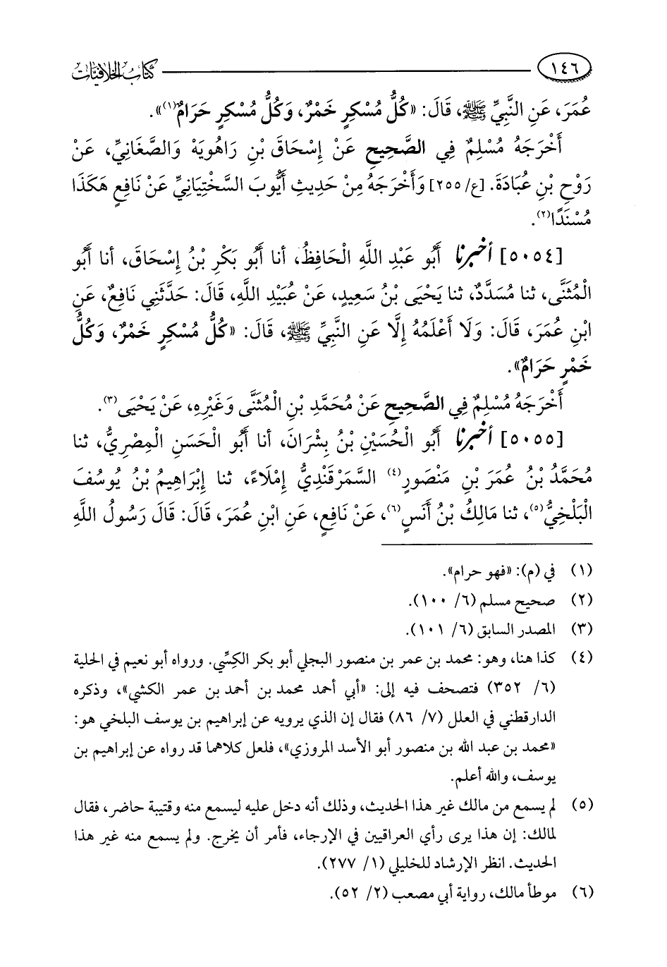 [5055] أخبرنا أَبُو الْحُسَيْنِ بْنُ بِشْرَانَ، أنا أَبُو الْحَسَنِ الْمِصْرِيُّ، ثنا مُحَمَّدُ بْنُ عُمَرَ بْنِ مَنْصُورٍ (¬4) السَّمَرْقَنْدِيُّ إِمْلَاءً، ثنا إِبْرَاهِيمُ بْنُ يُوسُفَ الْبَلْخِيُّ (¬5)، ثنا مَالِكُ بْنُ أَنَسٍ (¬6)، عَنْ نَافِعٍ، عَنِ ابْنِ عُمَرَ، قَالَ: قَالَ رَسُولُ اللَّهِ