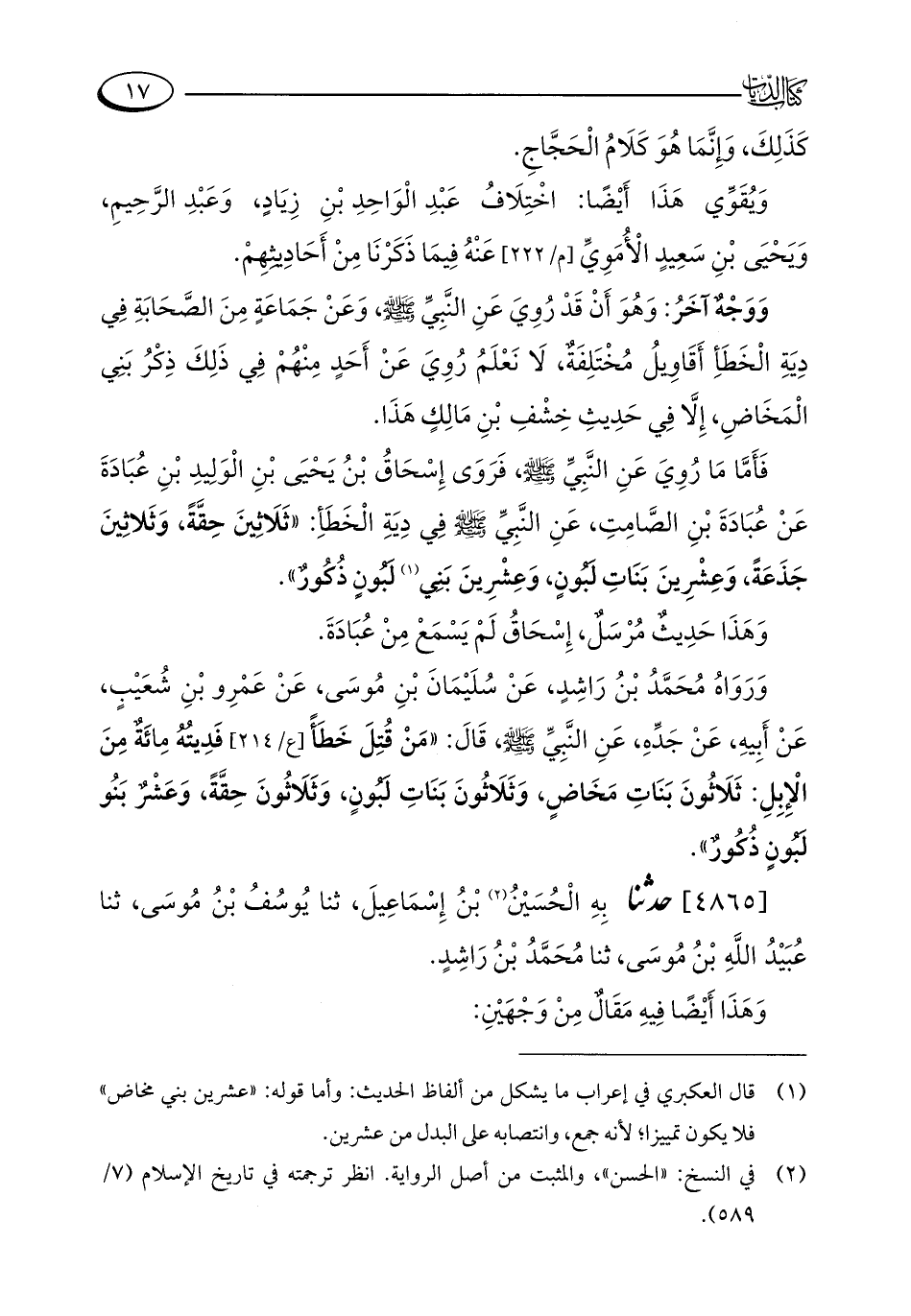 [4865] حدثنا بِهِ الْحُسَيْنُ (¬2) بْنُ إِسْمَاعِيلَ، ثنا يُوسُفُ بْنُ مُوسَى، ثنا عُبَيْدُ اللَّهِ بْنُ مُوسَى، ثنا مُحَمَّدُ بْنُ رَاشدٍ.