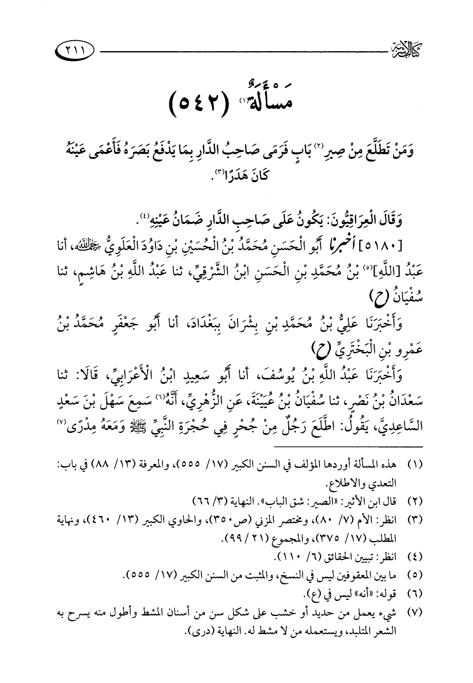 (¬1) هذه المسألة أوردها المؤلف في السنن الكبير (17/ 555)، والمعرفة (13/ 88) في باب: التعدي والاطلاع.