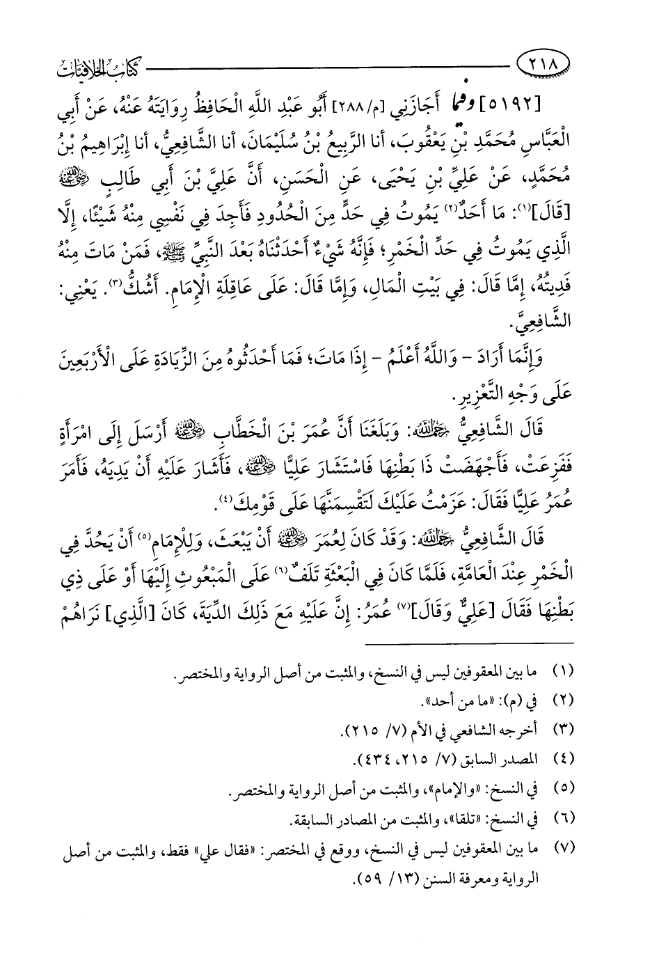 كتاب الخلافيات بين الإمامين الشافعي وأبي حنيفة وأصحابه ت النحال (اسم الجزء: 7)