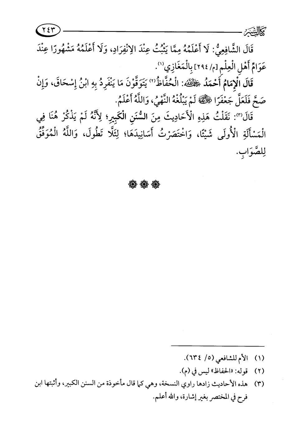 قَالَ (¬3): نَقَلْتُ هَذِهِ الْأَحَادِيثَ مِنَ السُّنَنِ الْكَبِيرِ؛ لِأَنَّهُ لَمْ يَذْكُرْ هُنَا فِي الْمَسْأَلَةِ الْأُولَى شَيْئًا، وَاخْتَصَرْتُ أَسَانِيدَهَا؛ لِئَلَّا تَطُولَ، وَاللَّهُ الْمُوَفِّقُ لِلصَّوَابِ.