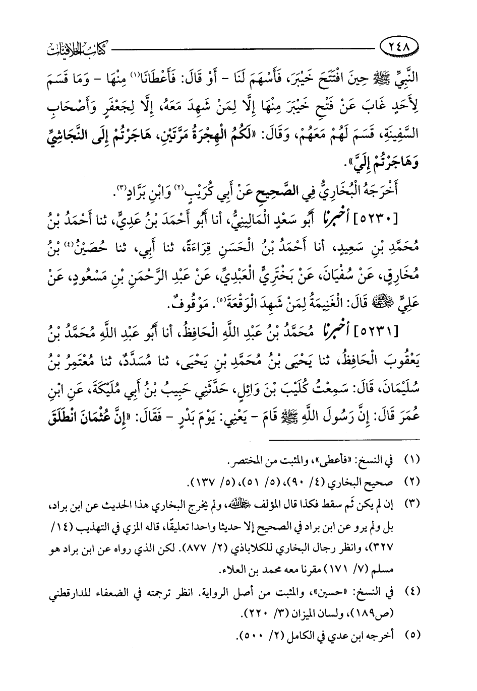(¬2) صحيح البخاري (4/ 90)، (5/ 51)، (5/ 137).