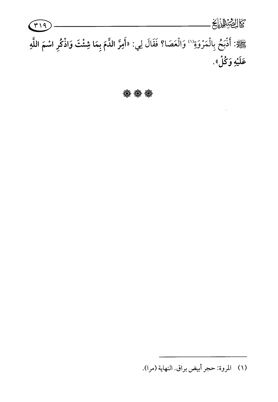 - صلى الله عليه وسلم -: أَذْبَحُ بِالْمَرْوَةِ (¬1) وَالْعَصَا؟ فَقَالَ لِي: "أَمِرَّ الدَّمَ بِمَا شِئْتَ وَاذْكُرِ اسْمَ اللَّهِ عَلَيْهِ وَكُلْ".