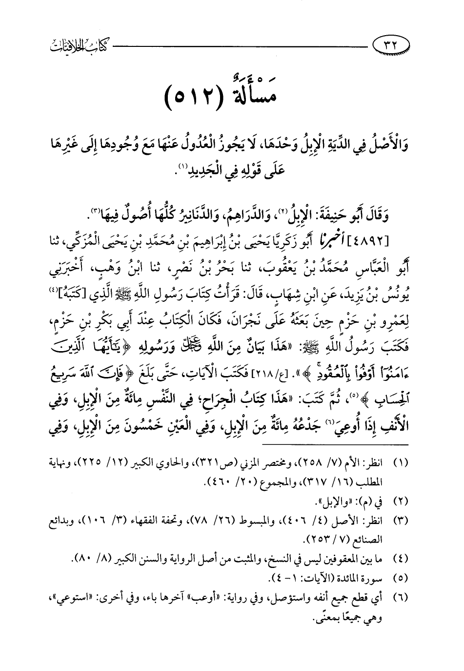 مَسْأَلَةٌ (512): وَالْأَصْلُ فِي الدِّيَةِ الْإِبِلُ وَحْدَهَا، لَا يَجُوزُ الْعُدُولُ عَنْهَا مَعَ وُجُودِهَا إِلَى غَيْرِهَا عَلَى قَوْلِهِ فِي الْجَدِيدِ (¬1).