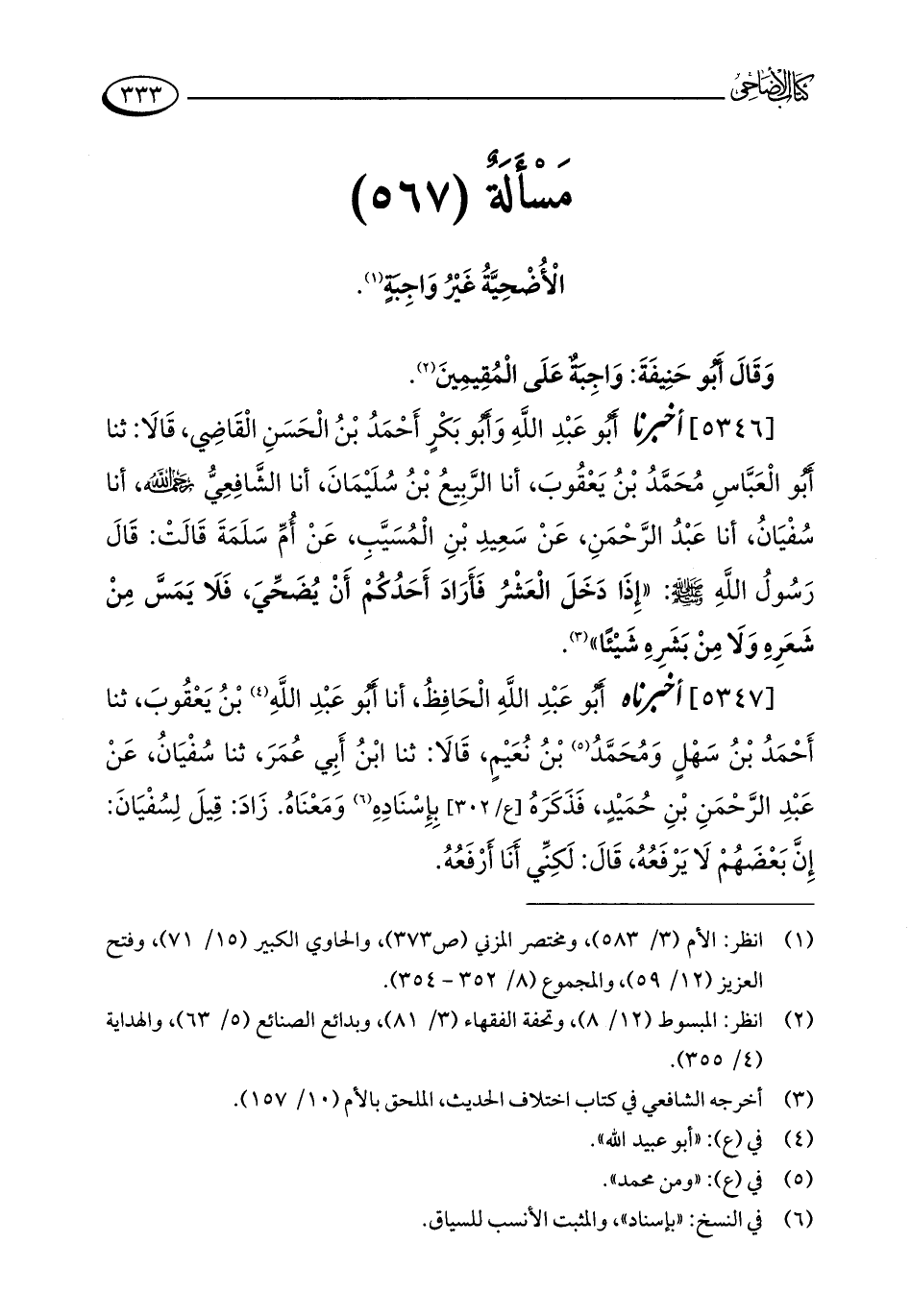 مَسْأَلَةٌ (567): الْأُضْحِيَّةُ غَيْرُ وَاجِبَةٍ (¬1).