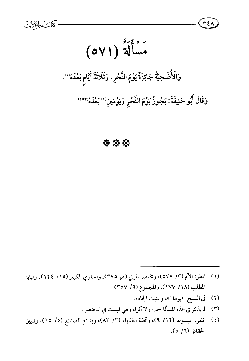 مَسْأَلَةٌ (571): وَالْأُضْحِيَّةُ جَائِزَةٌ يَوْمَ النَّحْرِ، وَثَلَاثَةَ أَيَّامٍ بَعْدَهُ (¬1).